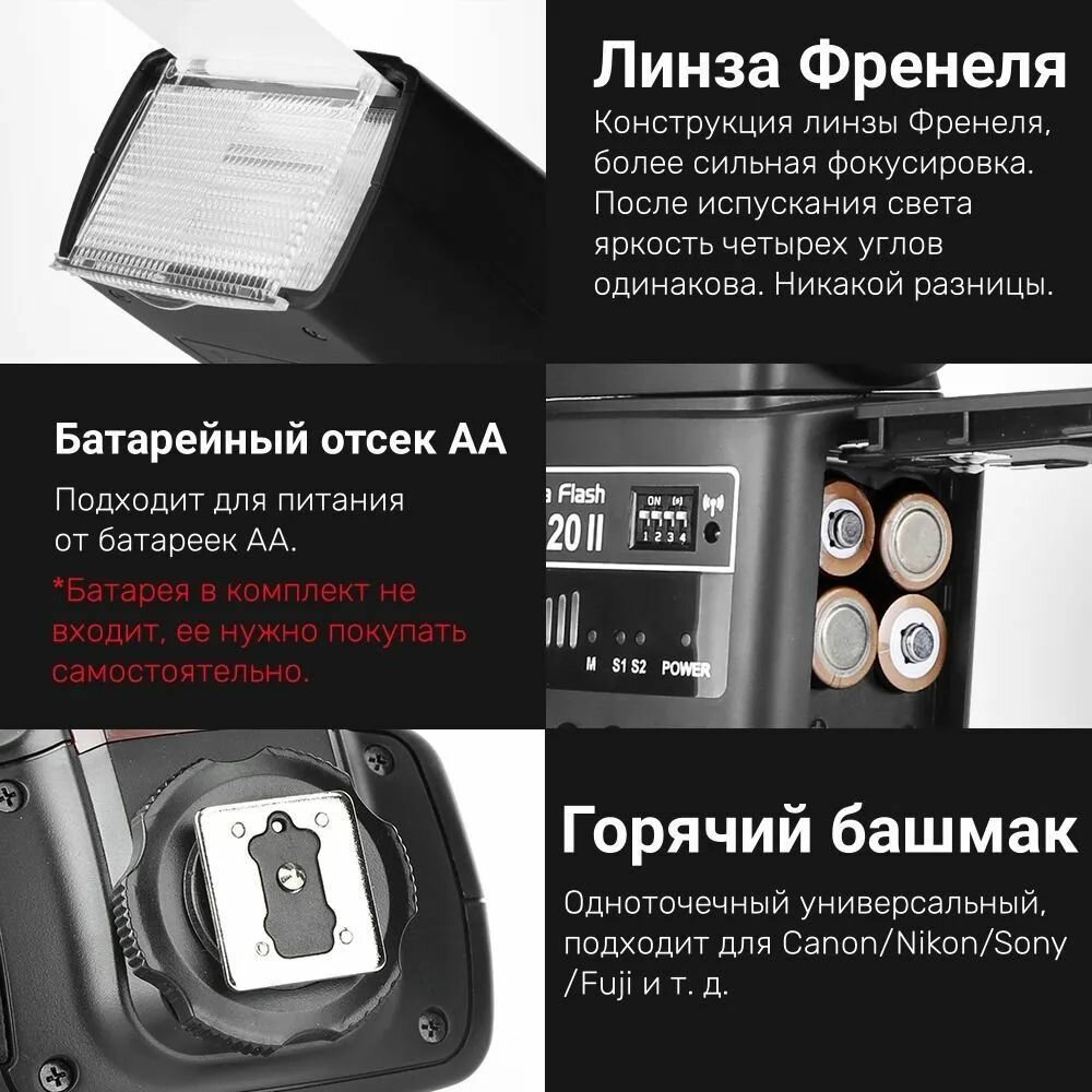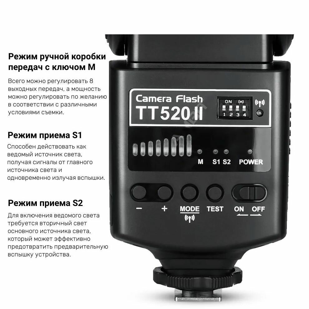 Вспышка Godox TT520II со встроенным беспроводным сигналом 433 МГц + комплект передатчика для зеркальных камер Canon Nikon Pentax Olympus интересное: