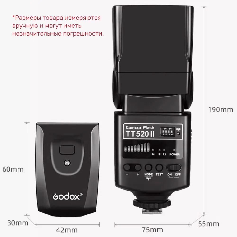 Купить Вспышка Godox TT520II со встроенным беспроводным сигналом 433 МГц + комплект передатчика для зеркальных камер Canon Nikon Pentax Olympus