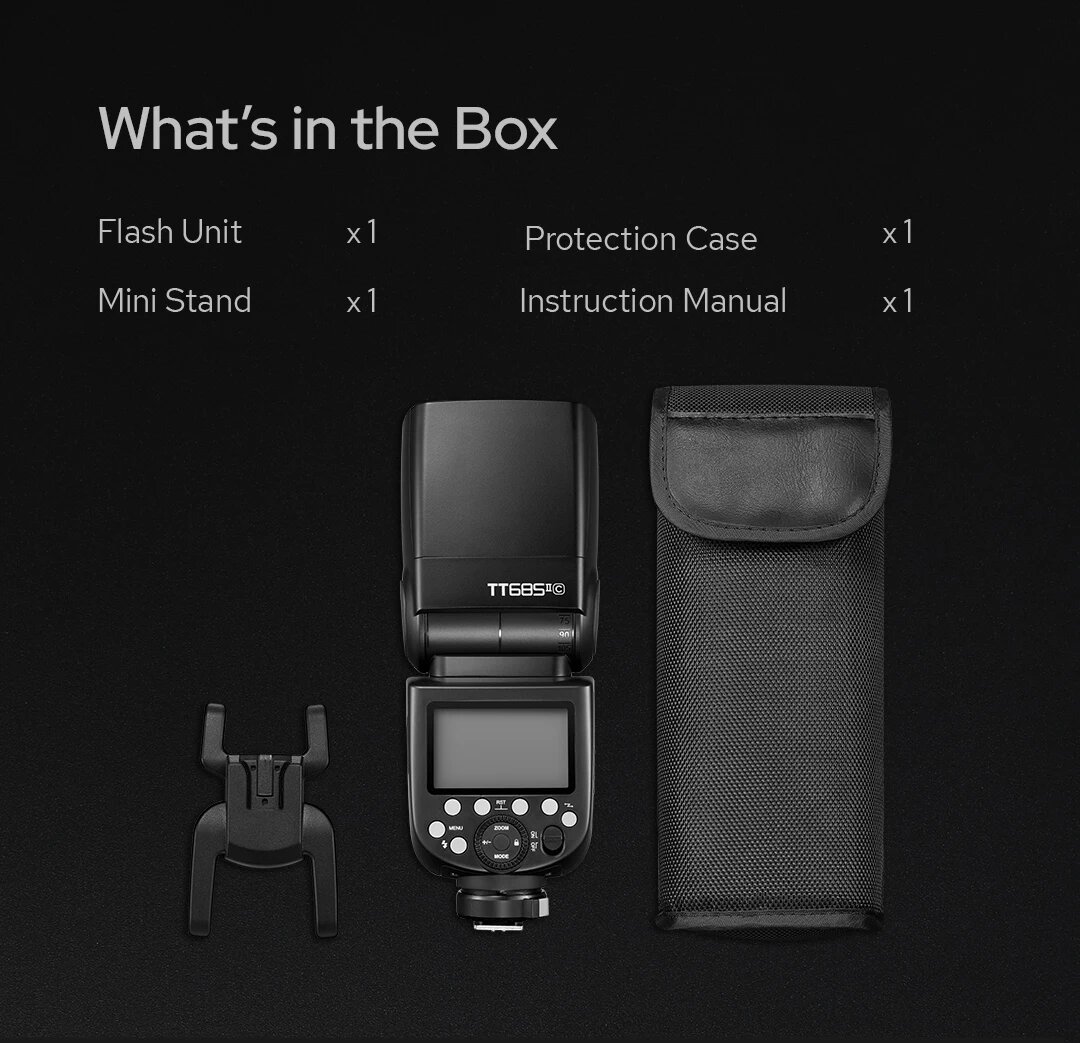 Вспышка Godox TT685II TT685IIC TT685IIN TT685IIS TT685IIF TT685O TTL HSS для камеры Canon Nikon Sony Fuji Olympus for 5d 6d 60d 600d 800d z5 z50 d750 d5000 d3000 a7 a7r a7s a7c a9 a6100 a6000 a6400 g9 gh5 xt-4 интересное: