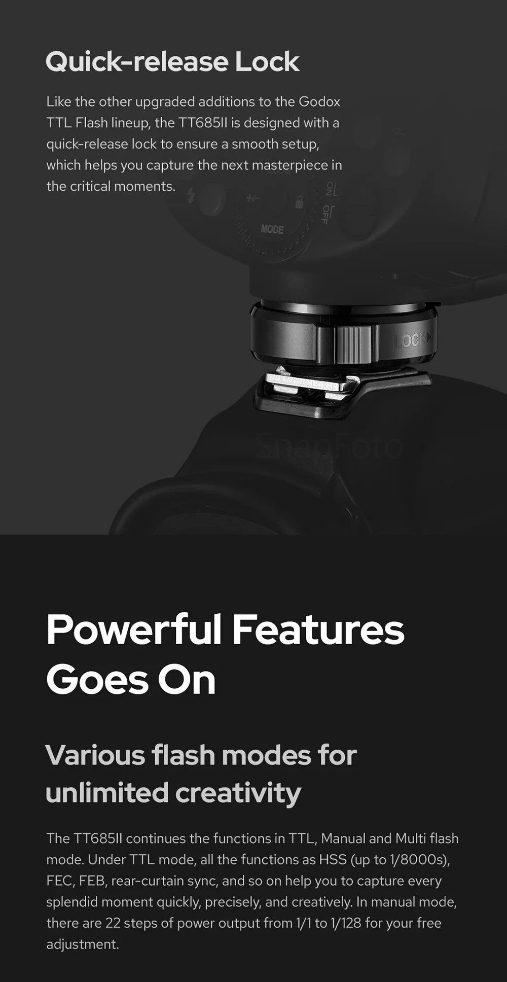 Вспышка для камеры Godox TT685II TTL HSS Speedlite TT685II-C Встроенная беспроводная система 2,4G X для камеры Canon Nikon Sony Fuji Olympus интересное:
