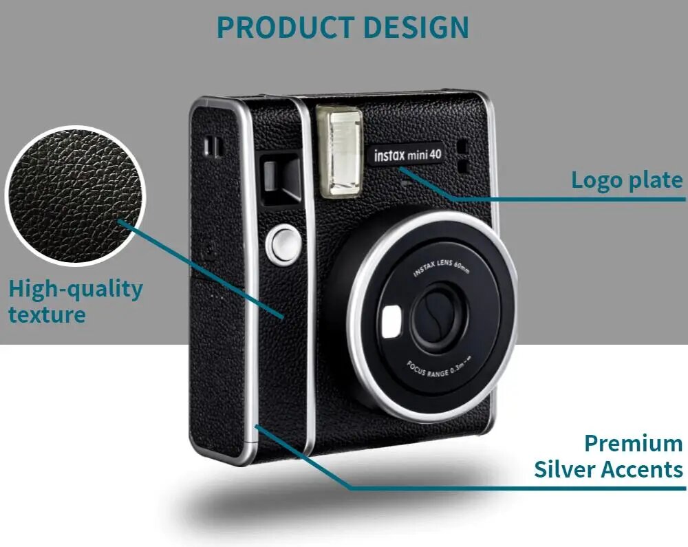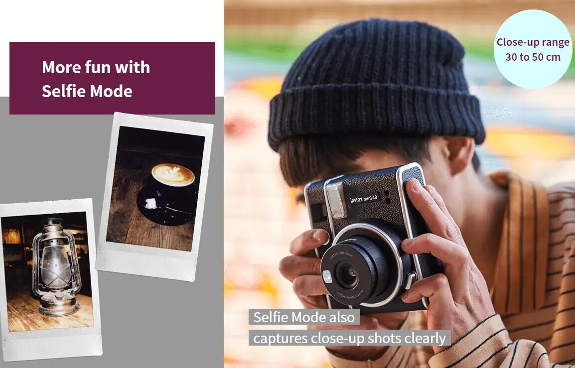 Fujifilm Instax Mini 40 Instant Camera Black + 20 листов белая пленка Instax + 64 карманных фотоальбома + набор аксессуаров 10-в-1 интересное: