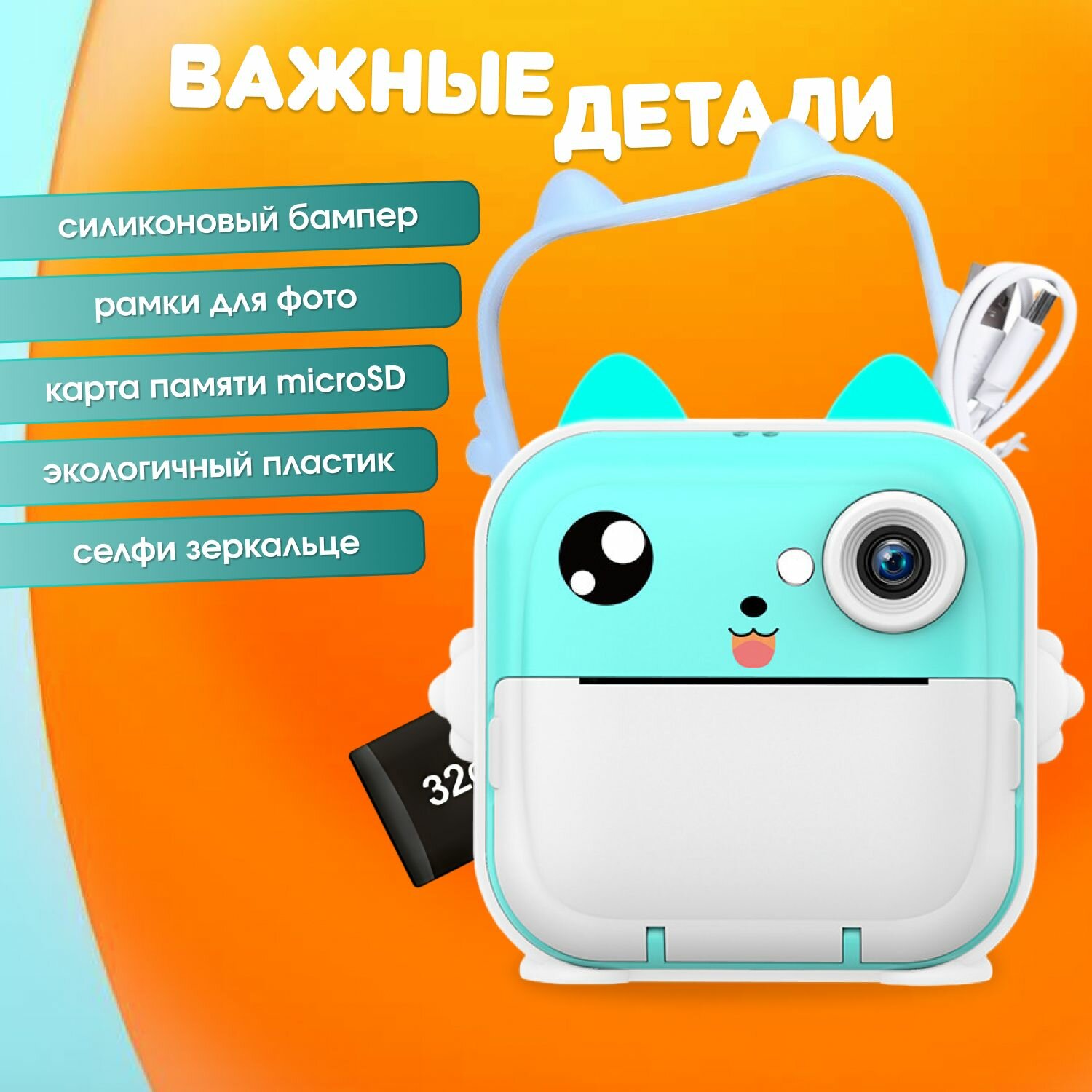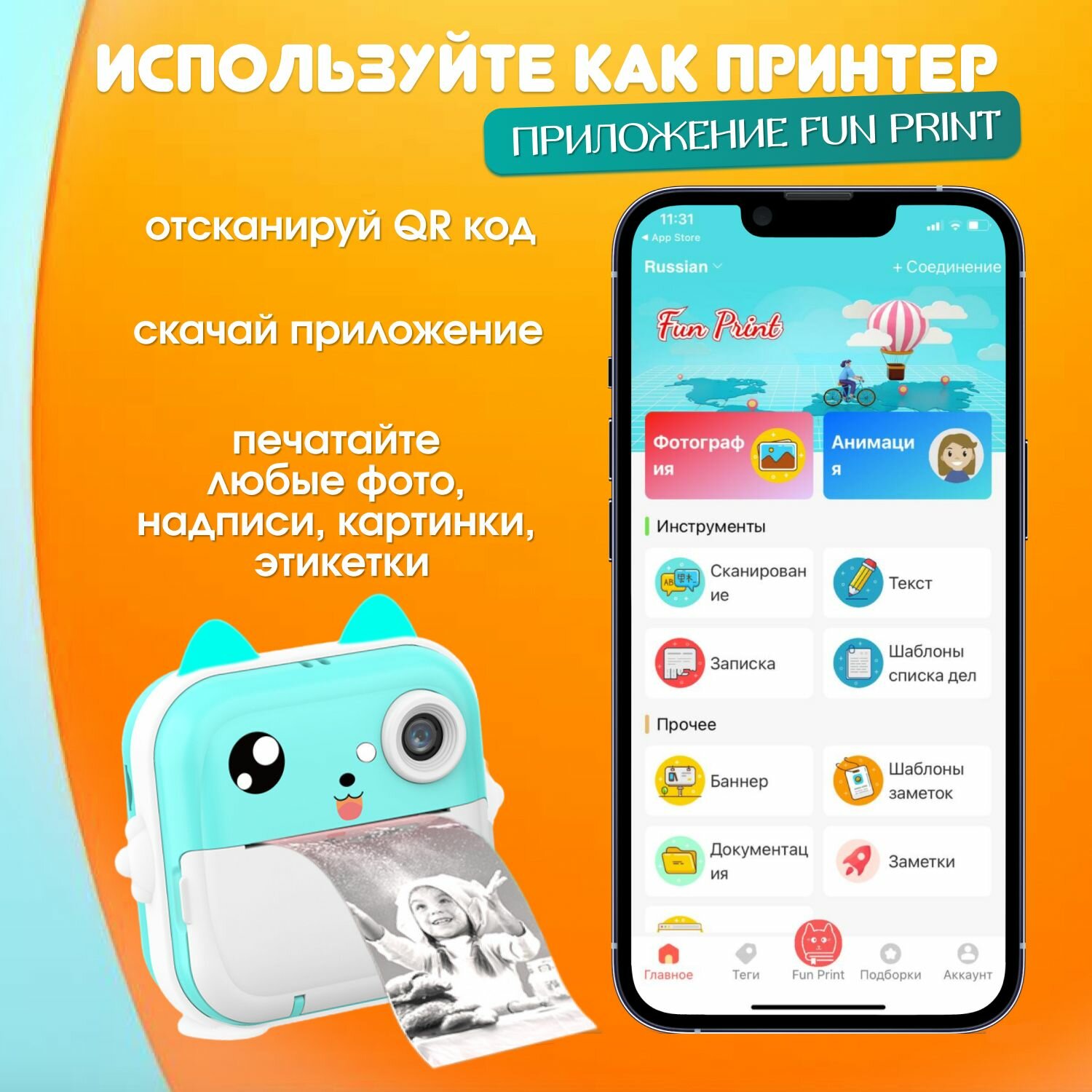 Фотоаппарат детский мгновенной печати. Голубой, котик интересное: