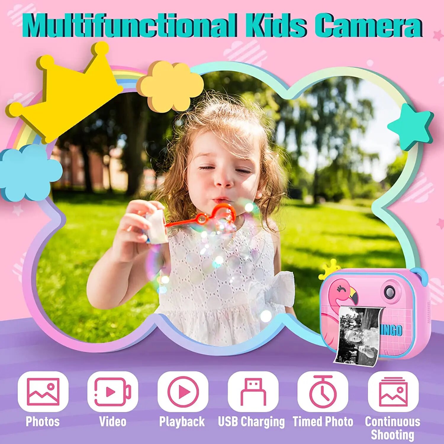 Детская фотокамера с мгновенной печатью 2,4 дюйма 1080P HD Цифровая фотокамера для девочек и мальчиков Рождественский подарок на день рождения интересное: