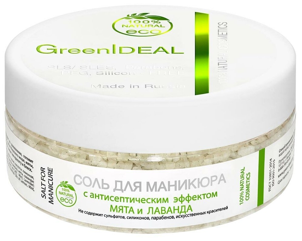 GreenIDEAL Соль для маникюра с антисептическим эффектом "Мята и лаванда" (натуральная, без парабенов) интересное: