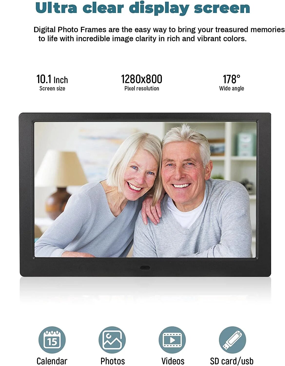 Фоторамка с 10-дюймовым экраном, задняя подсветка, HD IPS, 1280*800, цифровая фоторамка, фоторамка, полнофункциональная, с музыкой, фильмом, хороший подарок интересное: