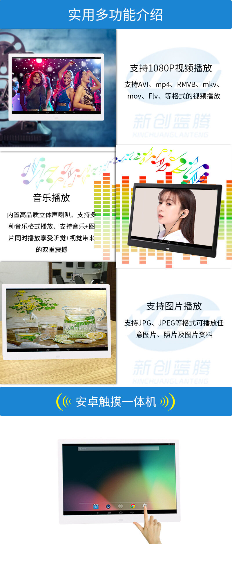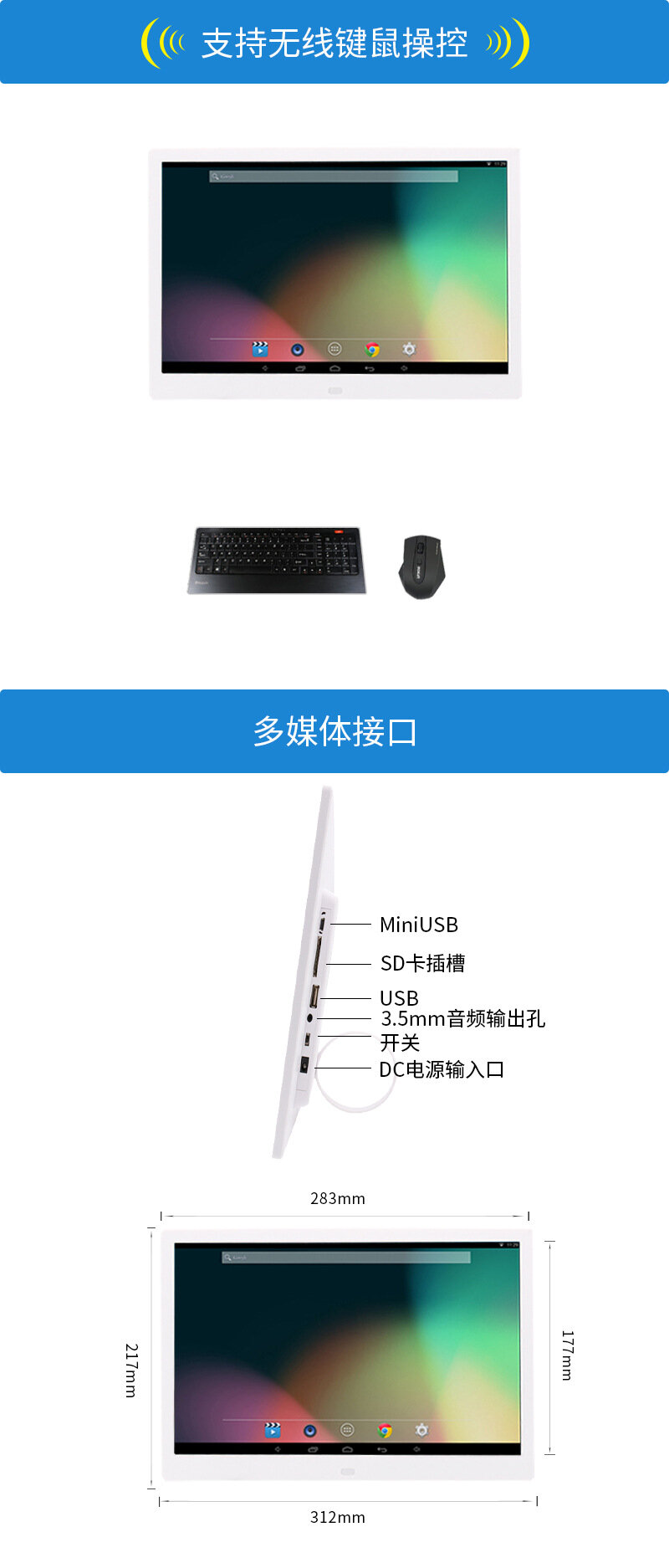 Видеоплеер, 13 дюймов, Android, WiFi, белый интересное: