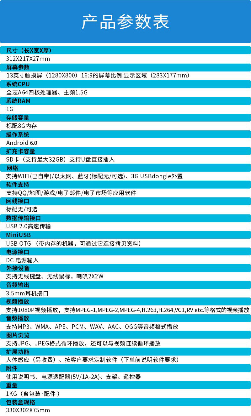 Купить Видеоплеер, 13 дюймов, Android, WiFi, белый