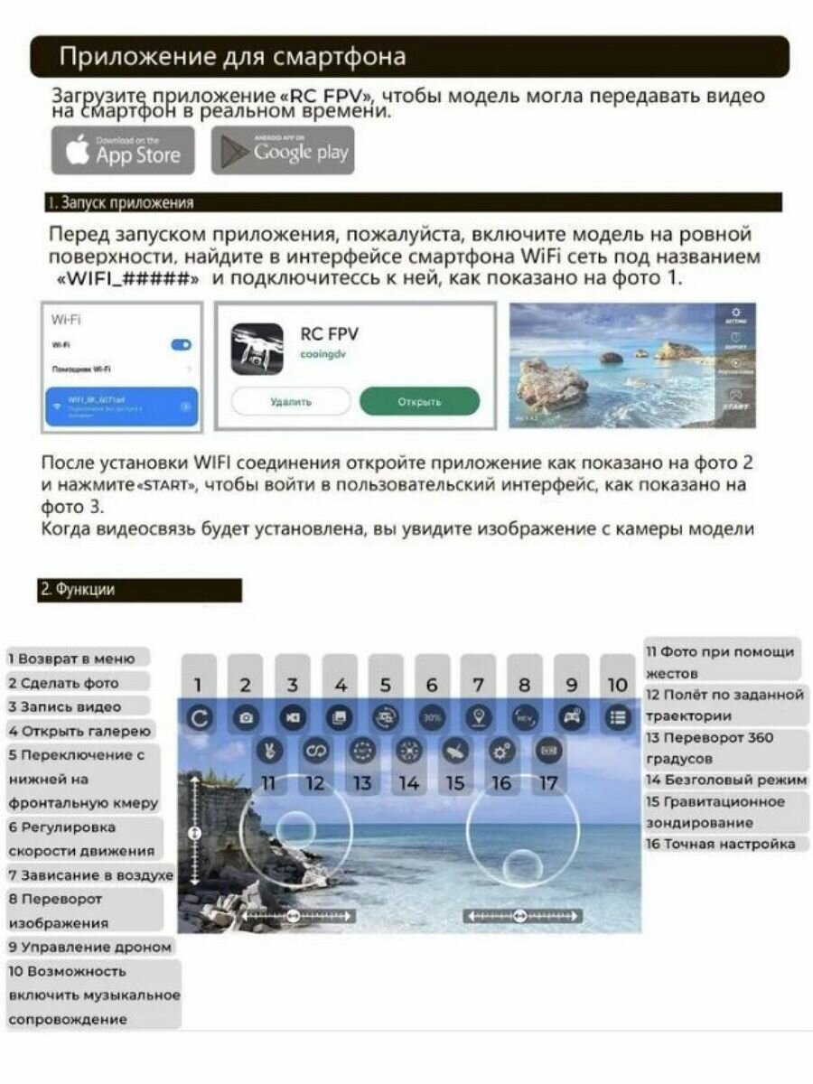 | Функции | автоматические флипы / автоматический взлет и посадка / вид от первого лица (FPV) / возврат одним нажатием |