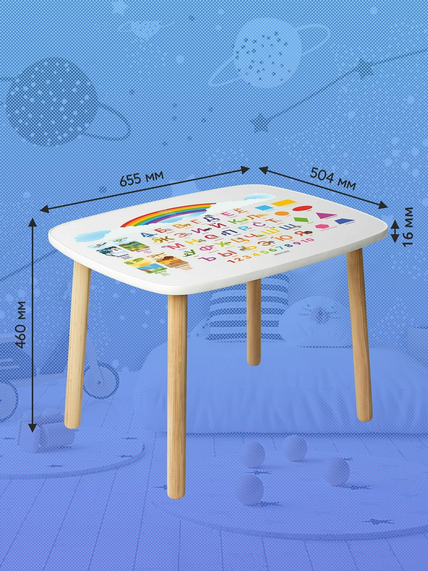Купить Детский стол и стул из дерева MEGA TOYS Алфавит комплект деревянный белый столик со стульчиком / набор мебели для детской комнаты