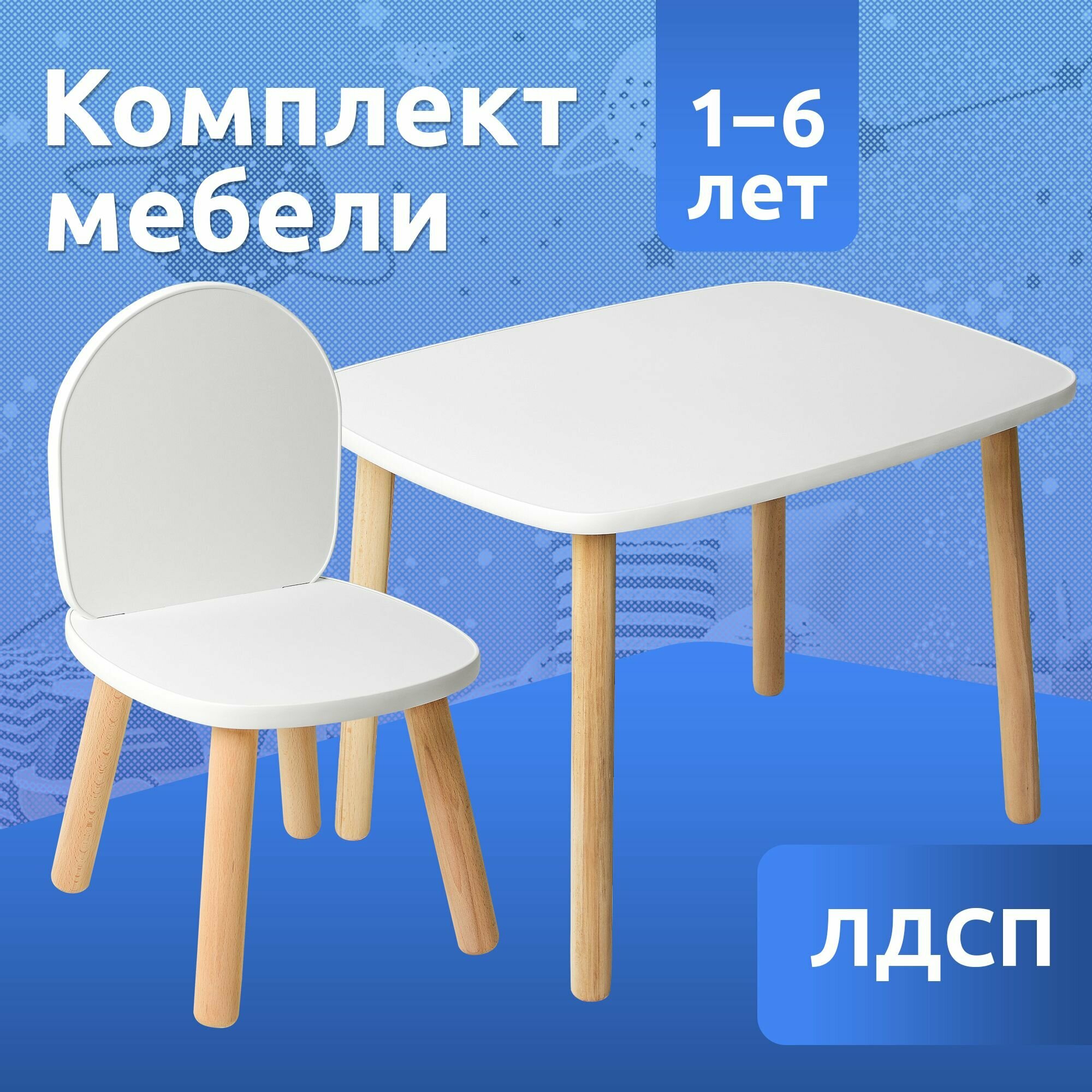 СохранитьДетский стол и стул из дерева MEGA TOYS Прямоугольный комплект деревянный белый столик со стульчиком / набор мебели для детской комнаты интересное: