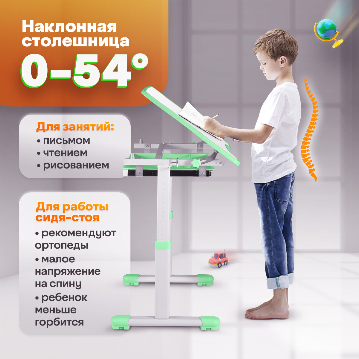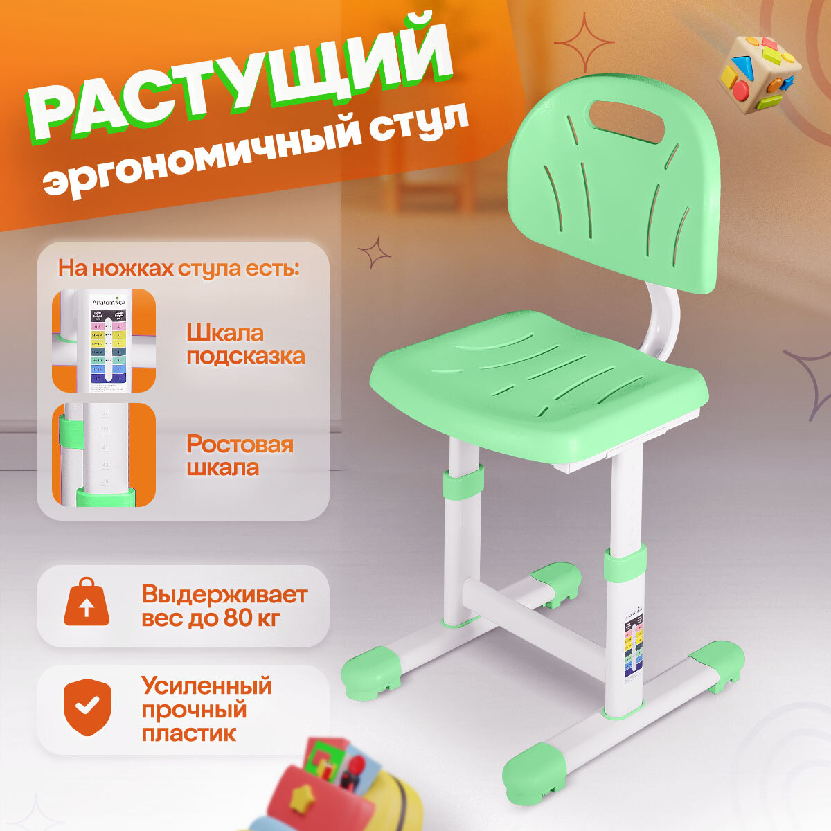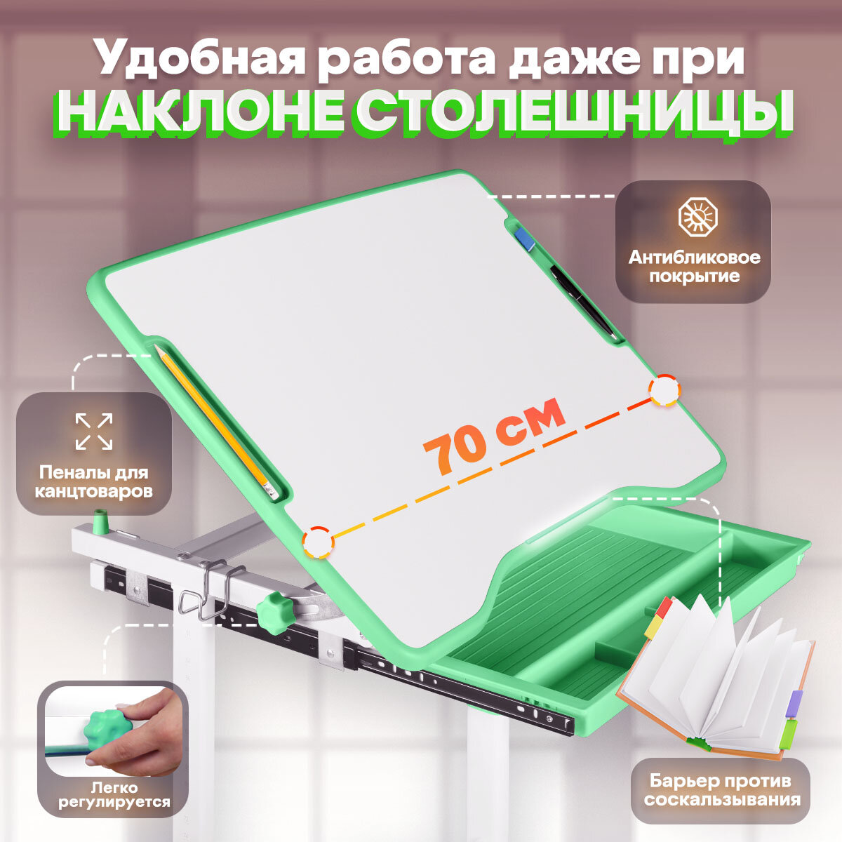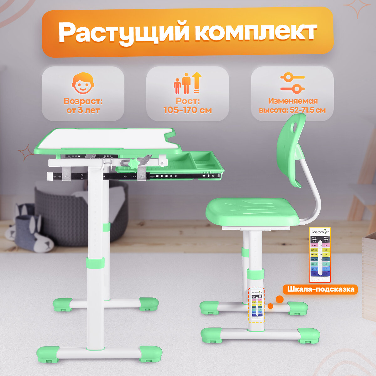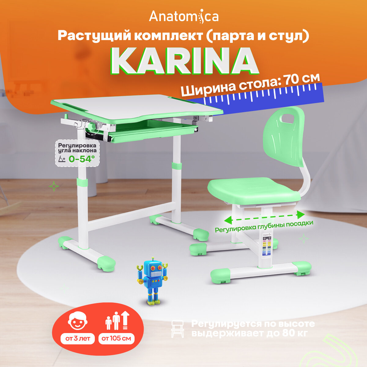 Комплект Anatomica Karina парта + стул + выдвижной ящик белый/зеленый интересное: