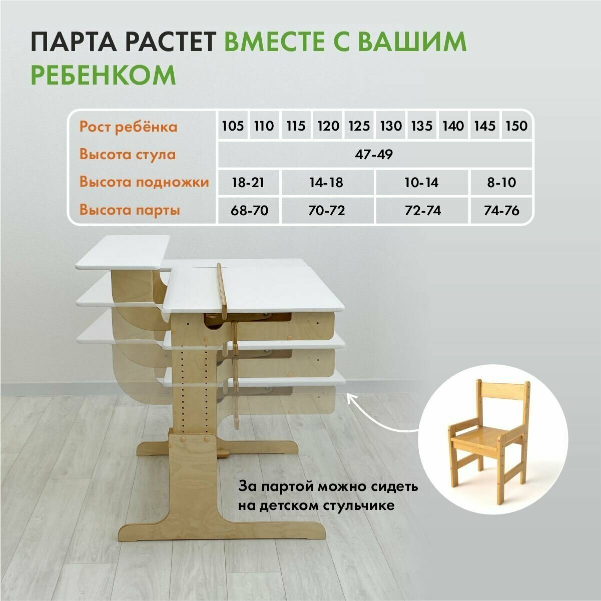 Растущая парта для школьника Rumbik Smart серая, детский деревянный письменный стол с регулировкой высоты