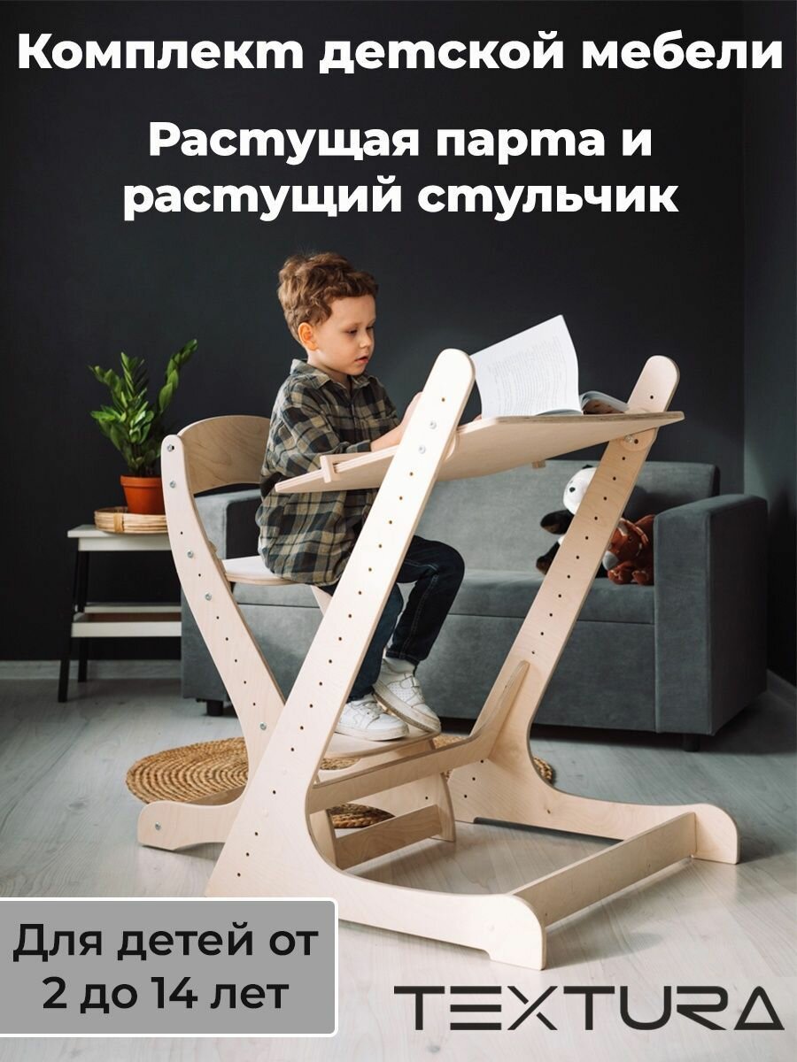 Детский стол и стул TEXTURA, Комплект детской мебели, Растущая парта и Растущий стул интересное: