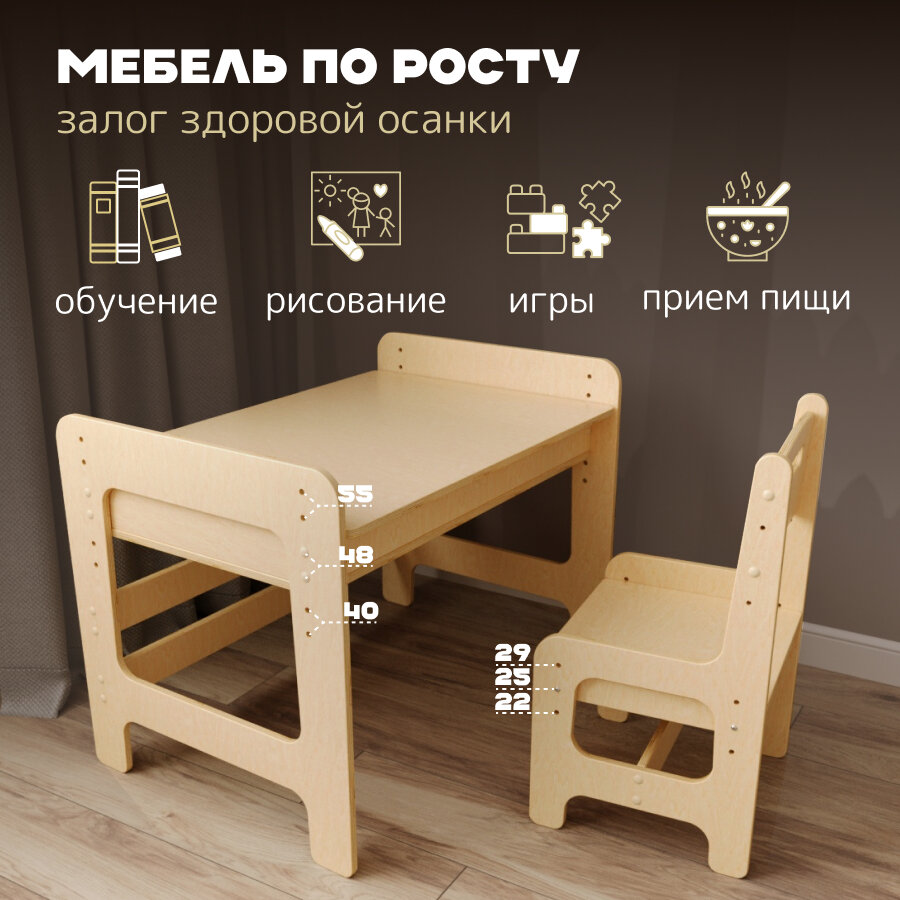 Комплект растущей мебели стол и стул "Для самых маленьких" лакированный PAPPADO интересное: