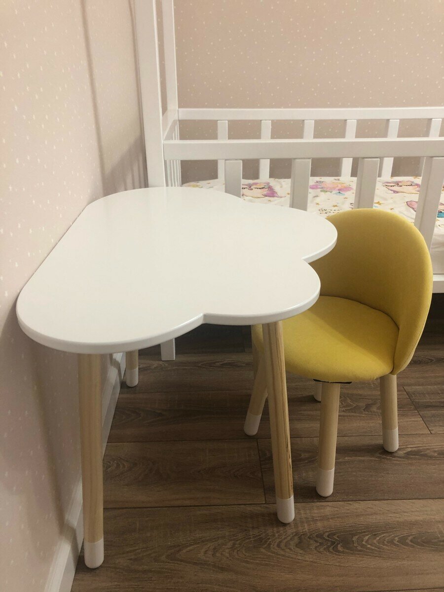Детский стол и стул "Облако" белый + Мягкий стульчик Желтый интересное: