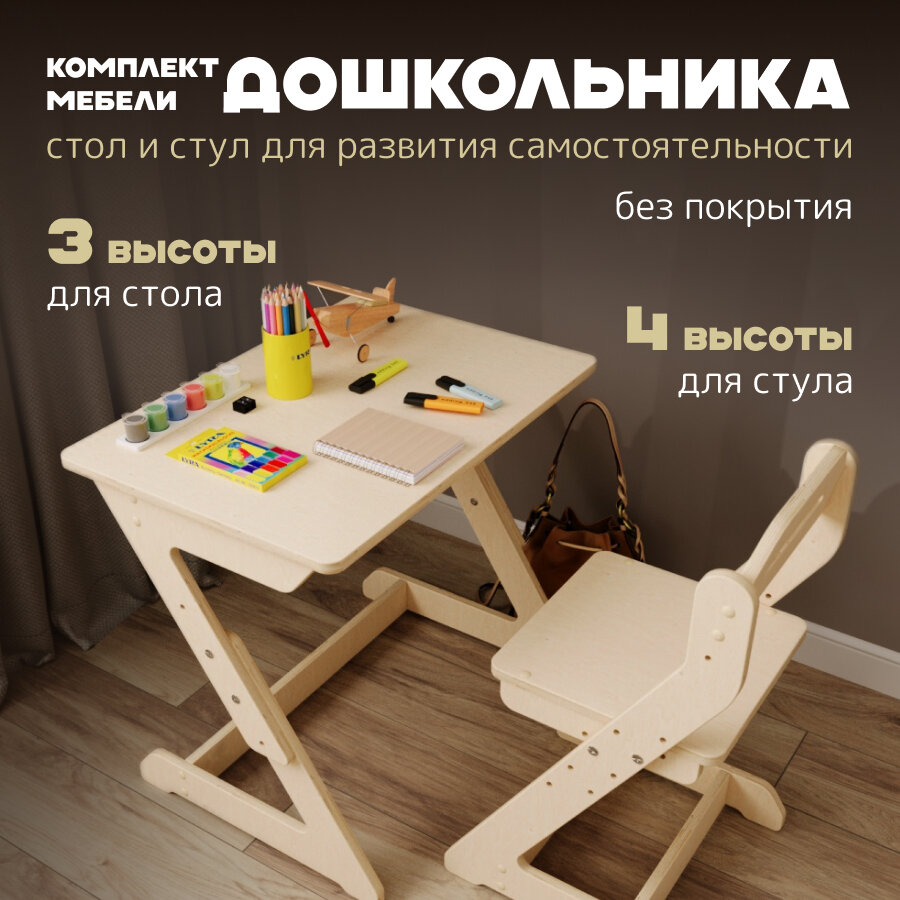 Комплект растущей мебели стол и стул "Для самых маленьких" без покрытия PAPPADO