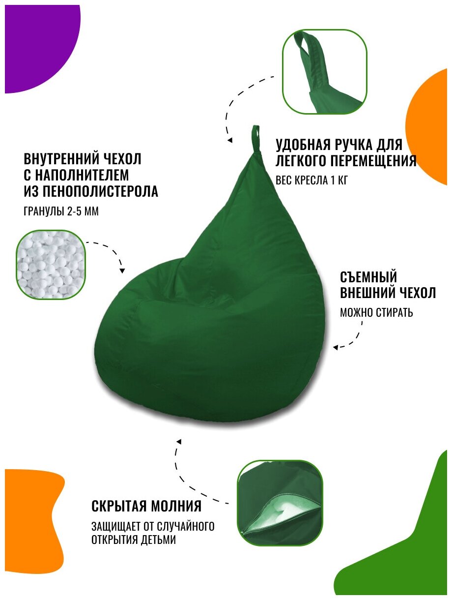 Кресло-мешок PUFON груша размер XL, темно-зеленый, материал дюспо