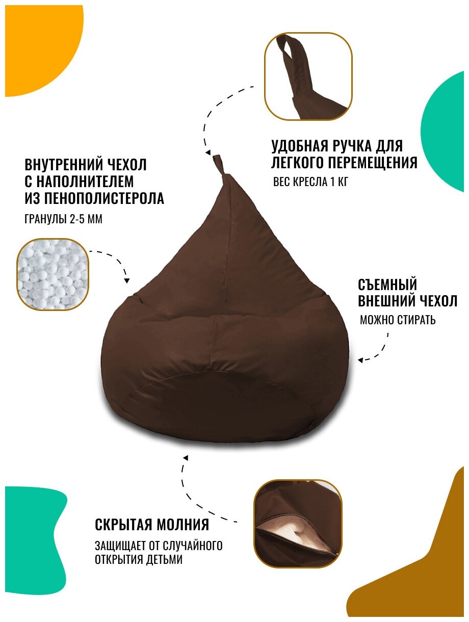 Кресло-мешок PUFON груша размер XL, коричневый, материал дюспо