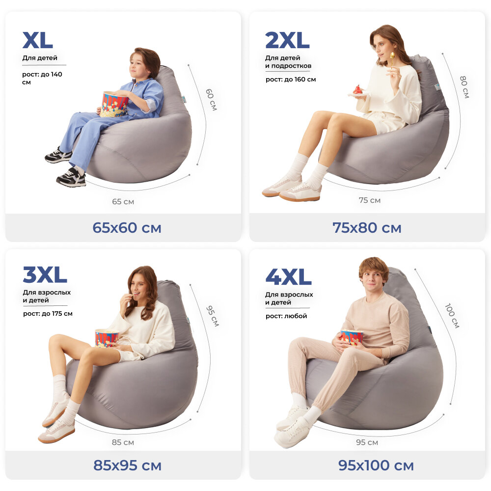 Кресло мешок Bean Joy кресло груша, размер ХL, оксфорд, серебристо-серый
