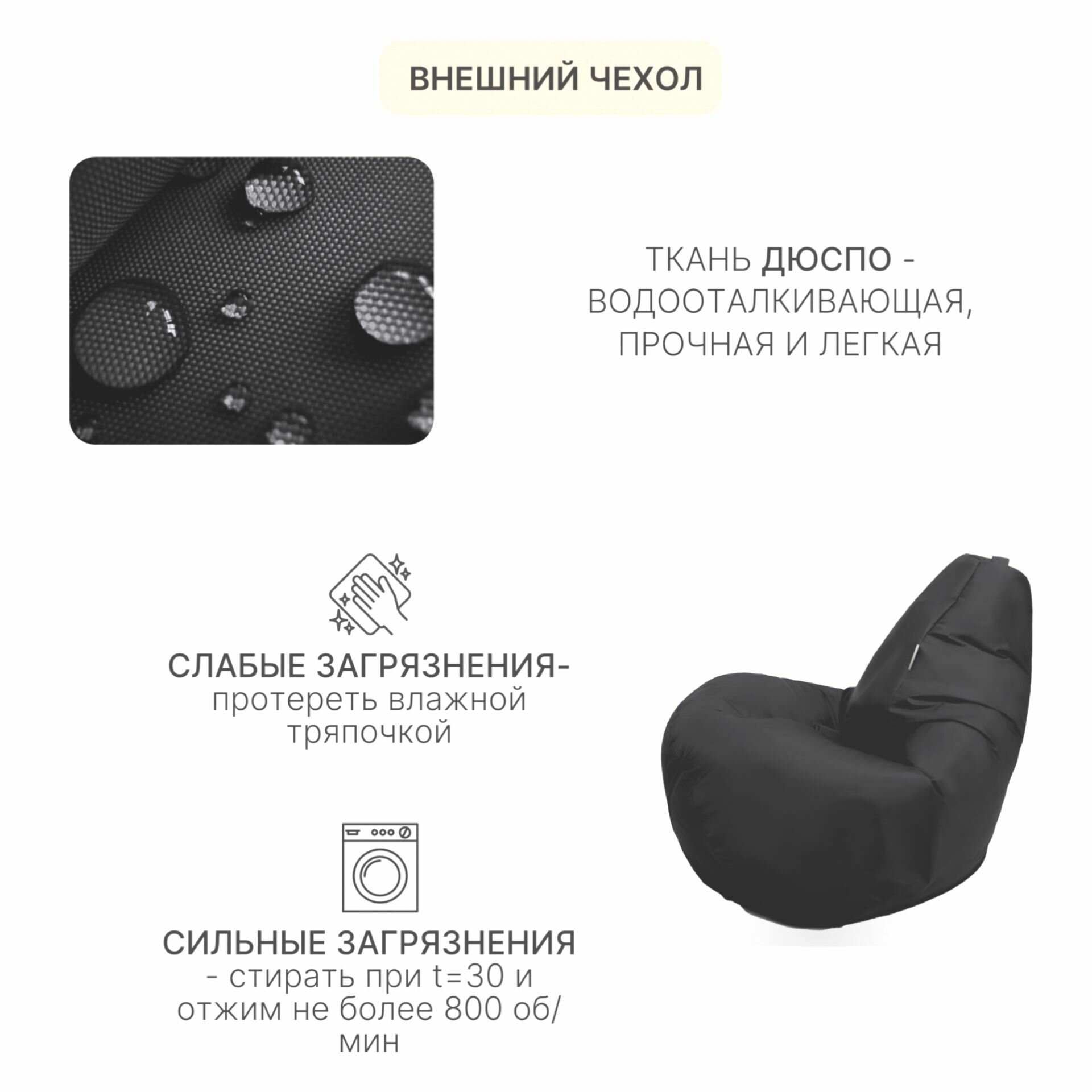 Кресло мешок Груша 4XL черный Дюспо