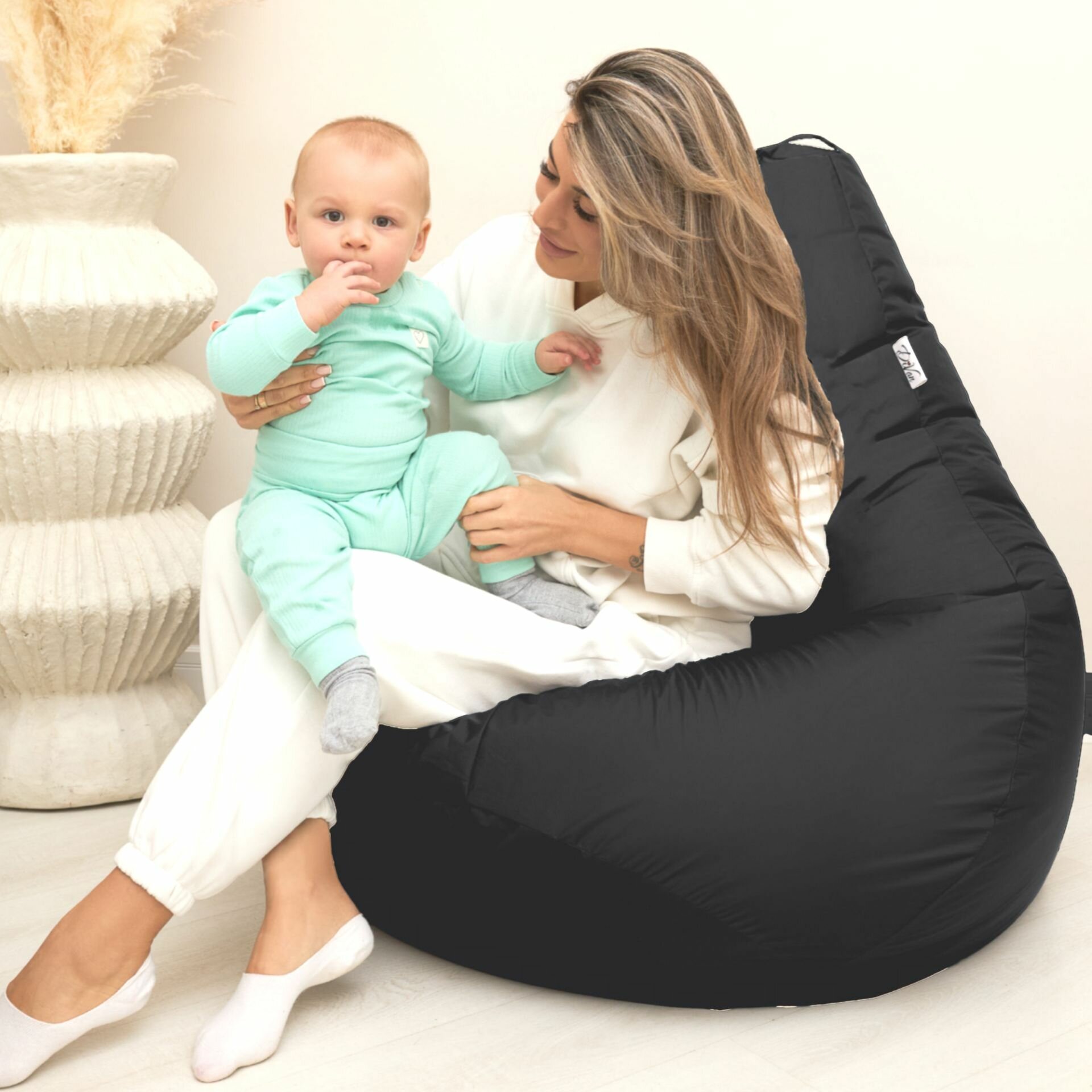 Кресло-мешок Пуффбери «Босс», размер большой, Эко-кожа и велюр Черный