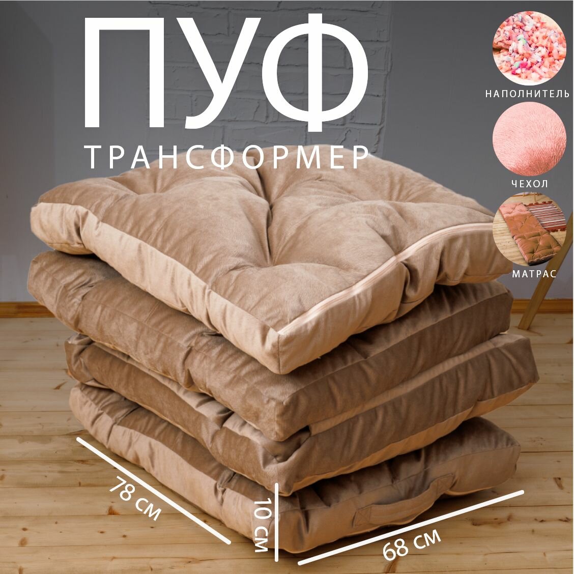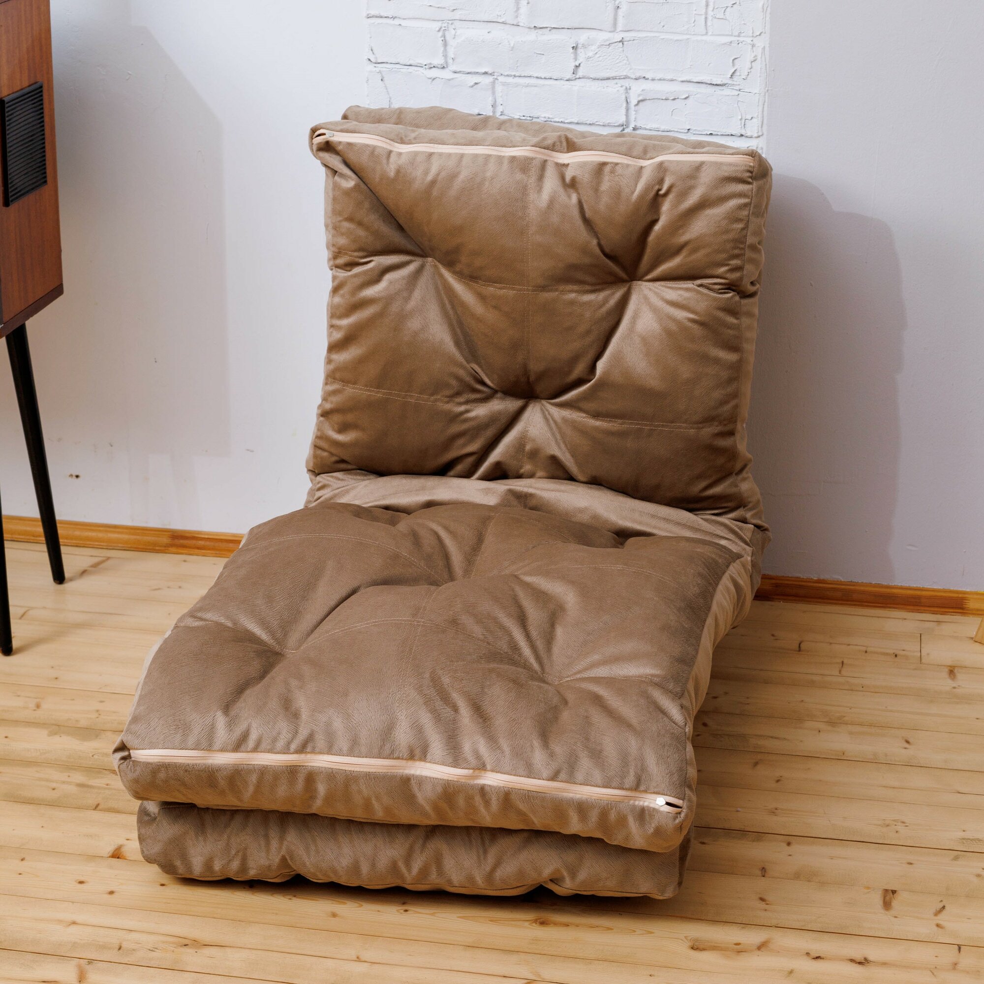 Купить Пуф раскладушка Bubble Bag 70х80х40 см трансформер матрас из натурального велюра раскладной 4 блока Темно-бежевый