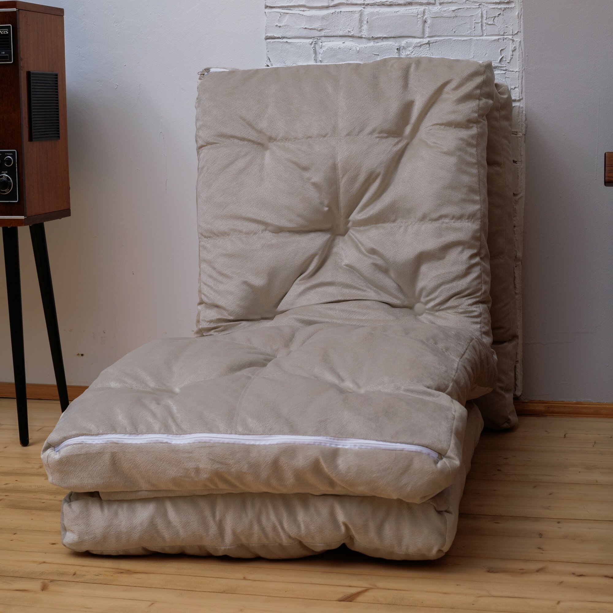 Пуф раскладушка Bubble Bag 70х80х40 см трансформер матрас из натурального велюра раскладной 4 блока Песочный