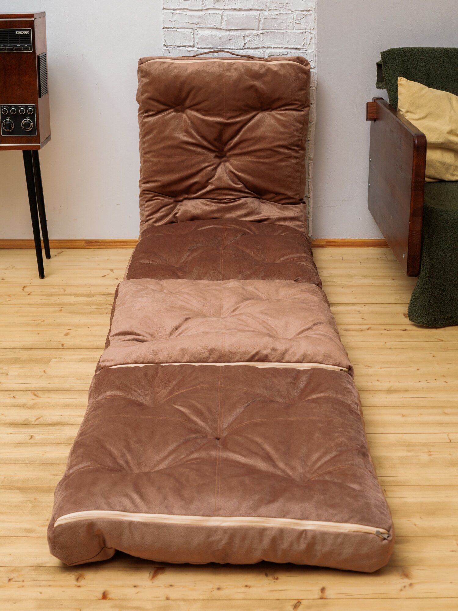 Пуф раскладушка Bubble Bag 70х80х40 см трансформер матрас из натурального велюра раскладной 4 блока Шоколадный