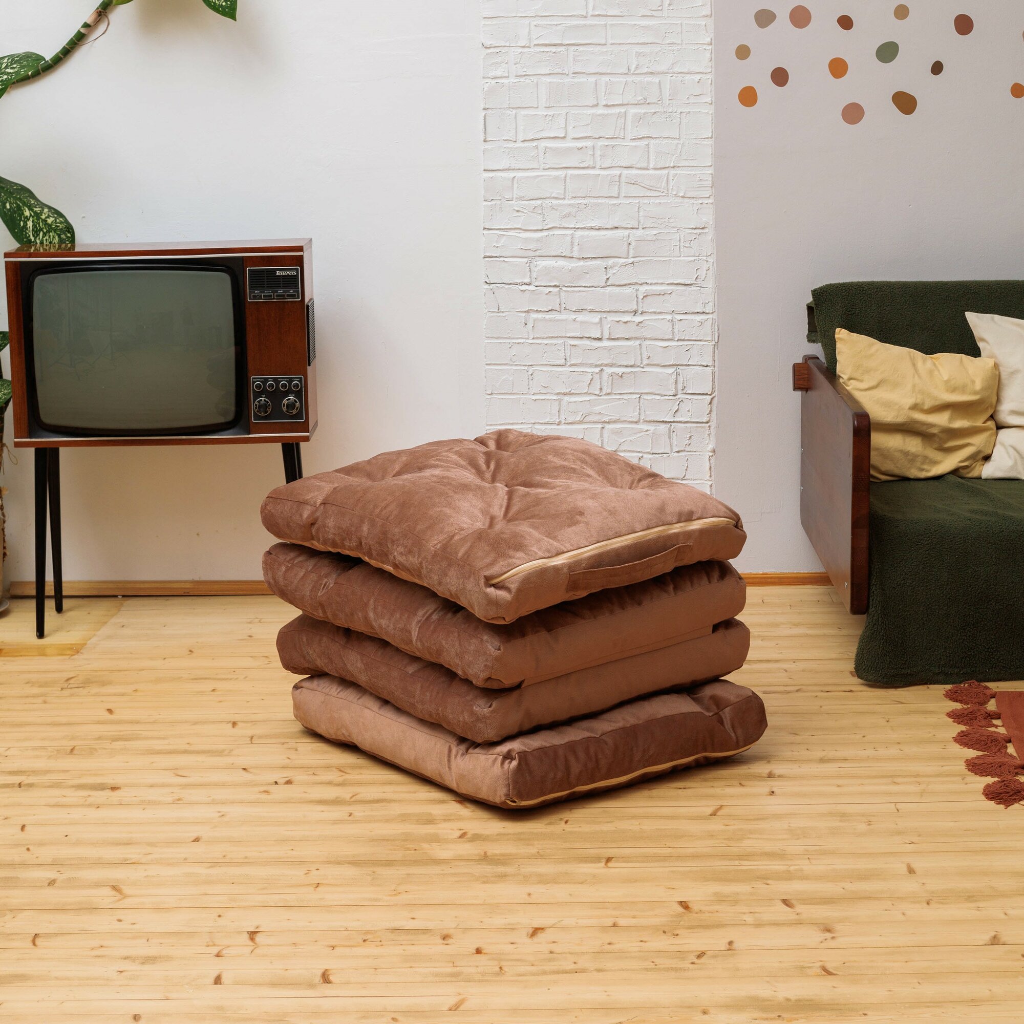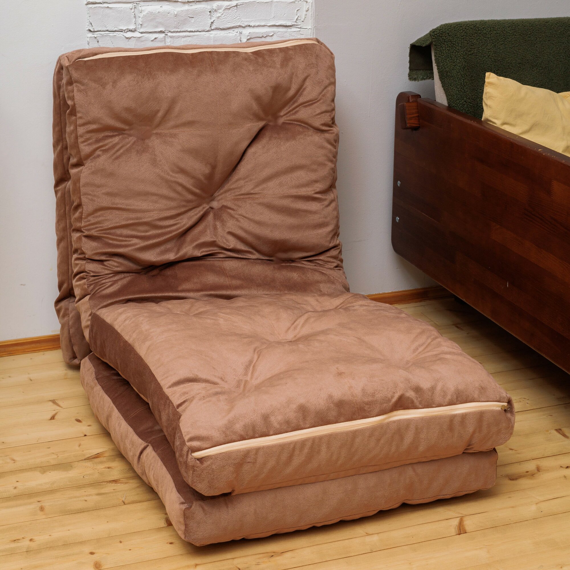 Купить Пуф раскладушка Bubble Bag 70х80х40 см трансформер матрас из натурального велюра раскладной 4 блока Ореховый