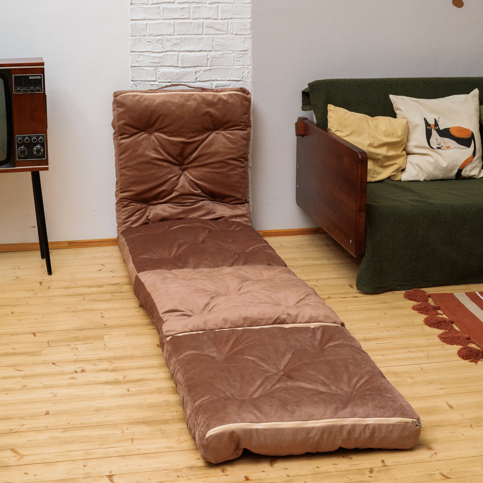 Пуф раскладушка Bubble Bag 70х80х40 см трансформер матрас из натурального велюра раскладной 4 блока Темно-бежевый