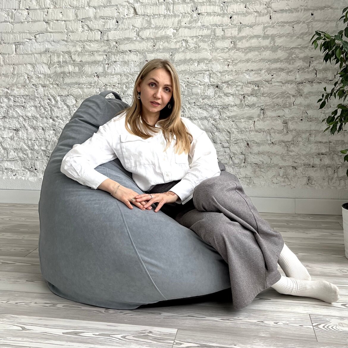 Кресло-мешок мягкое, ткань велюр, цвет серый, размер XXXL
