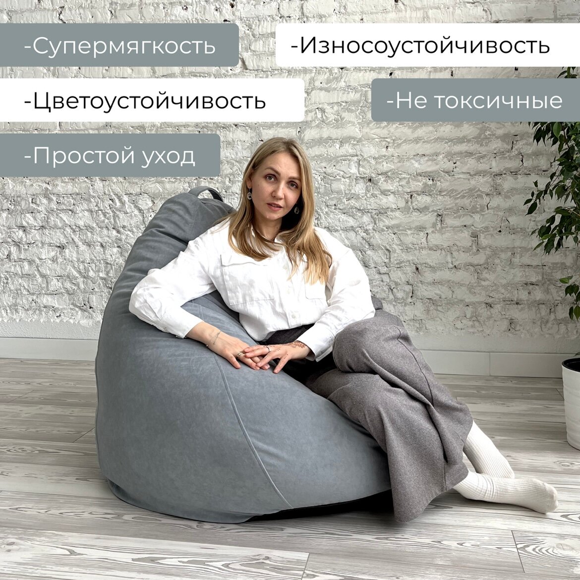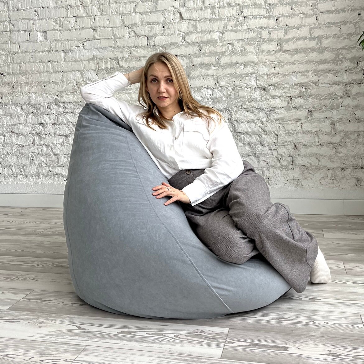 Купить Кресло-мешок мягкое, ткань велюр, цвет светло-серый, размер XXXL