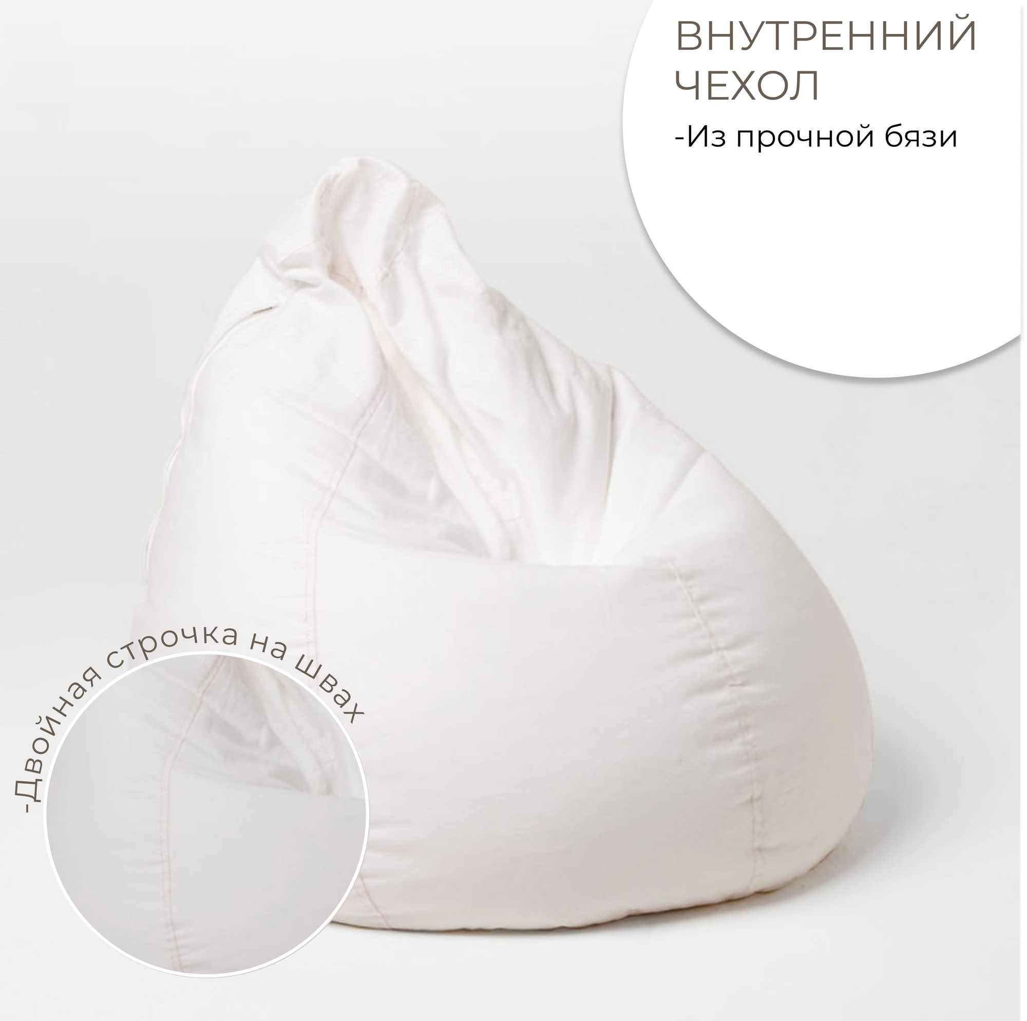 Кресло-мешок мягкое, ткань велюр, цвет слоновая кость, размер XXXL