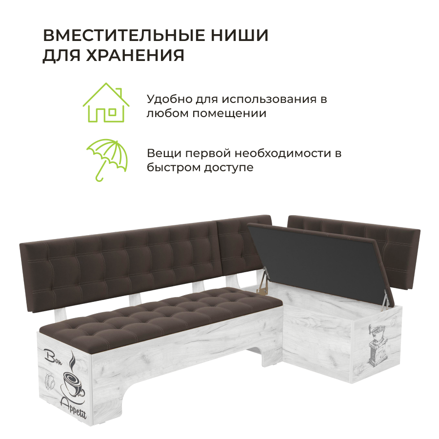 СохранитьКухонный уголок BONMEBEL Сиэтл со спальным местом, Дуб Крафт белый/Ловерс коричневый, 194х110х82 см интересное:
