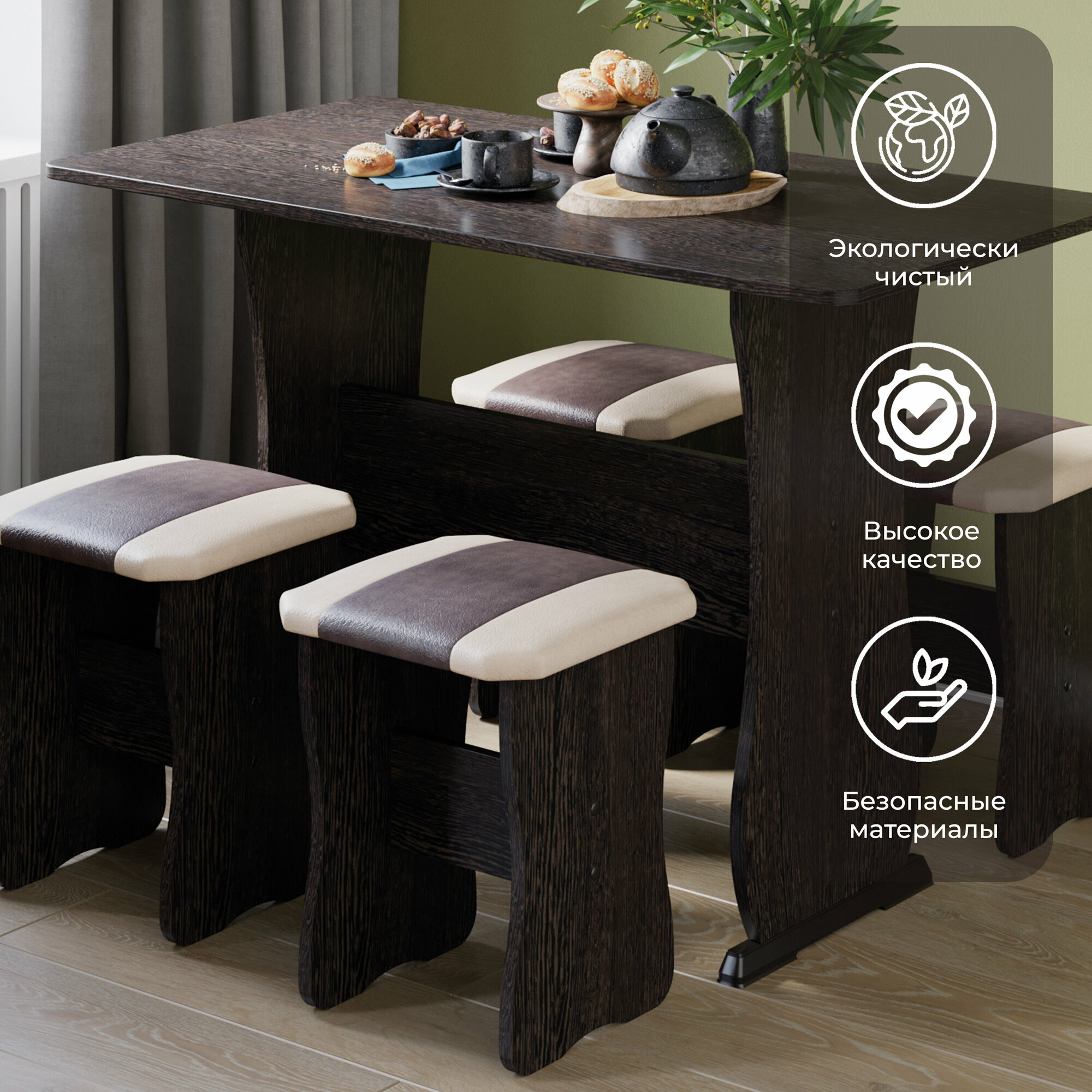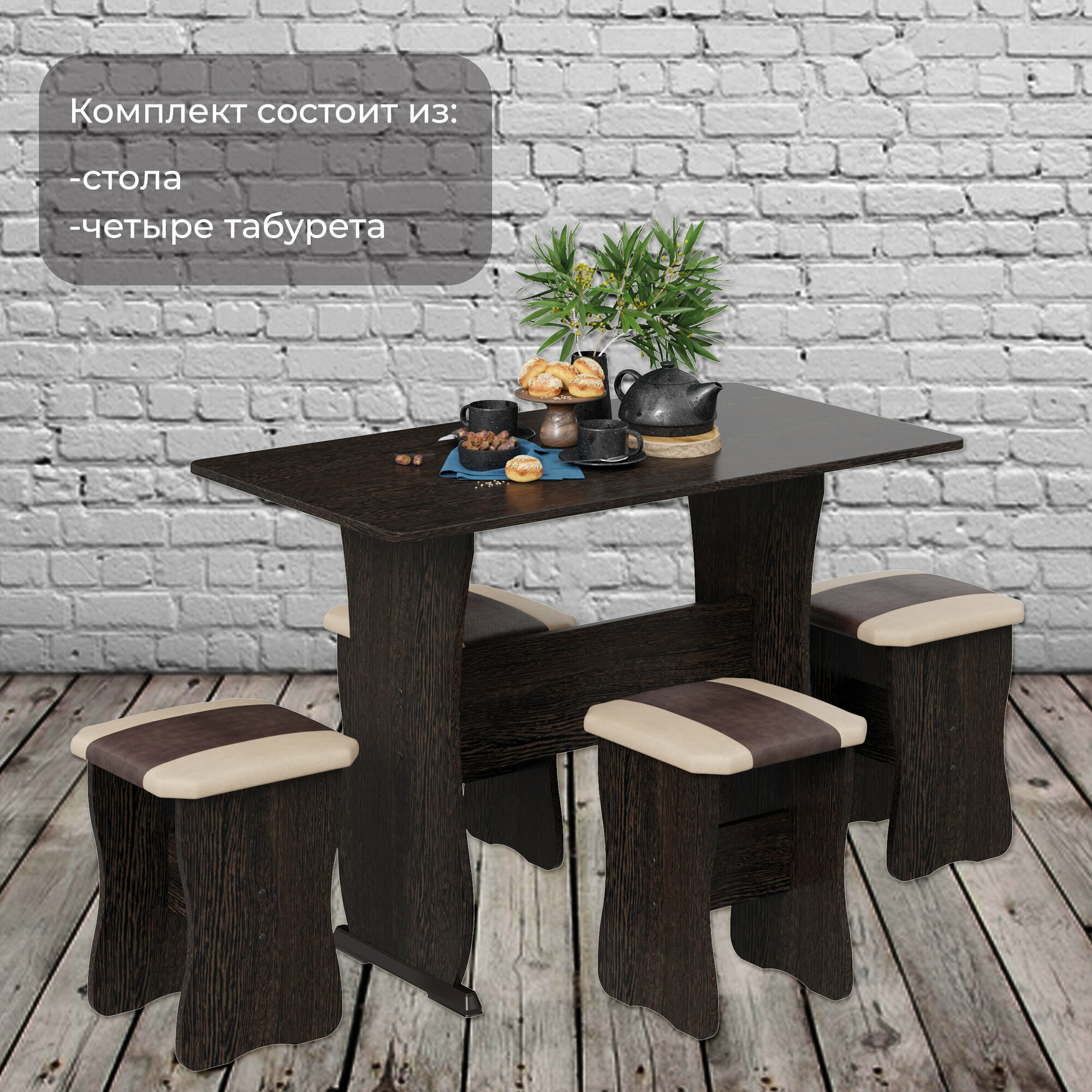 Купить Обеденная группа со столом и табуретками, кухонный набор стол и 4 табурета, коричневый бежевый, Тип 1