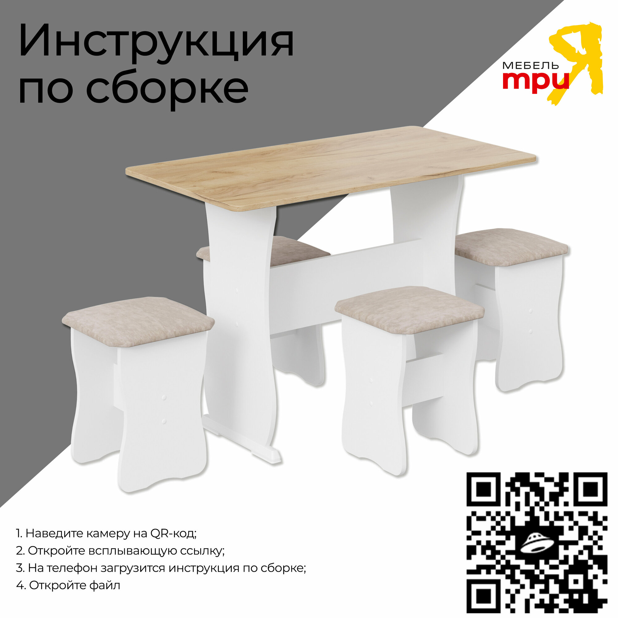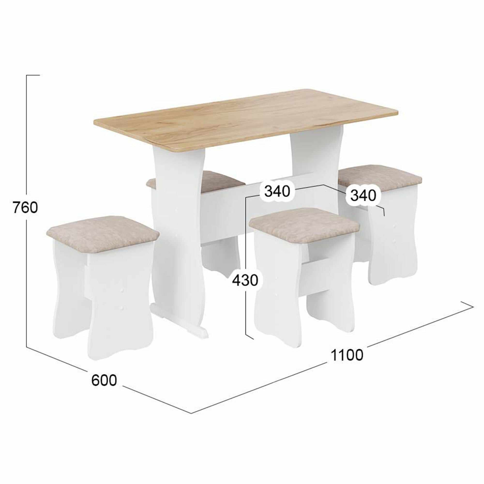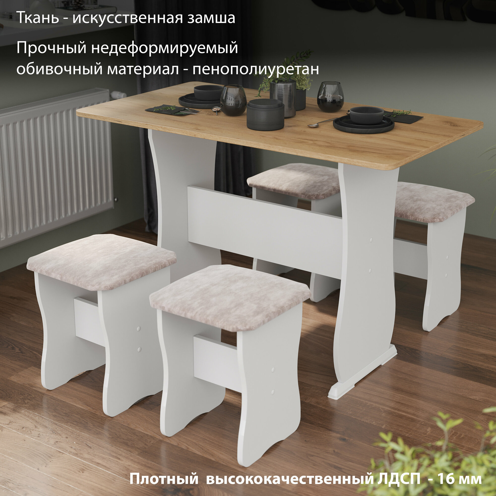 СохранитьОбеденная группа со столом и табуретками, кухонный набор стол и 4 табурета, белый бежевый, Тип 1 интересное: