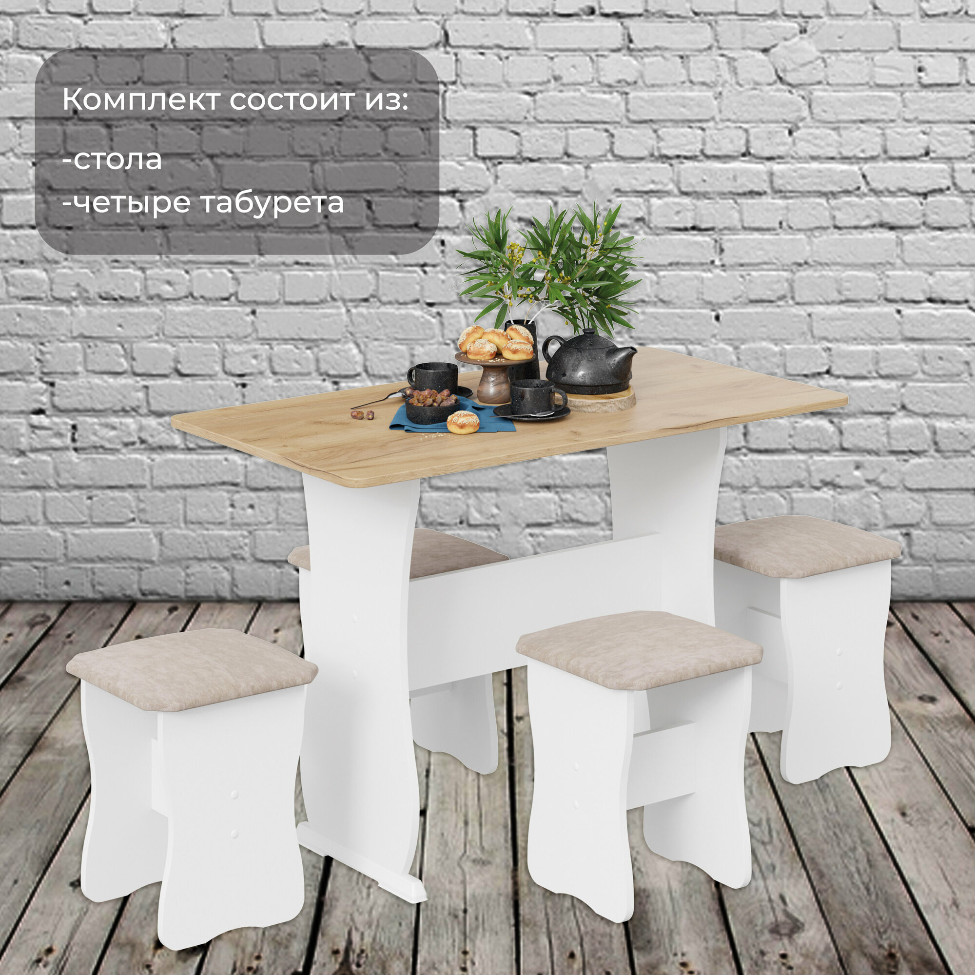 Купить Обеденная группа со столом и табуретками, кухонный набор стол и 4 табурета, белый бежевый, Тип 1