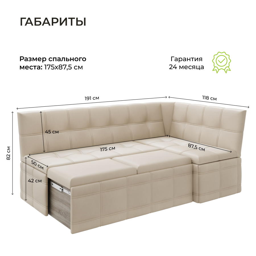 СохранитьКухонный уголок квадро тип1 исп 2 со спальным местом КЗ бежевый, BONMEBEL 191х118х82 см интересное: