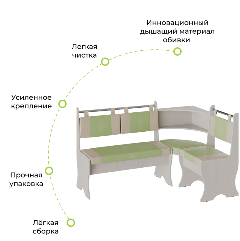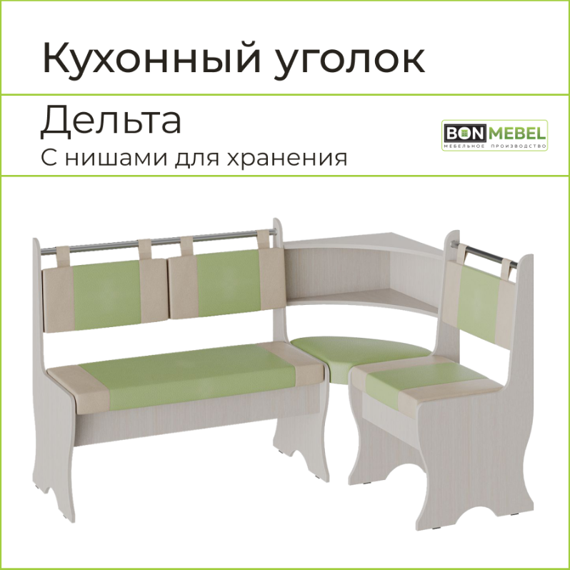СохранитьКухонный уголок Дельта BONMEBEL Дуб молочный/экокожа Фисташка/Бежевый, 152х104х90.5 см интересное: