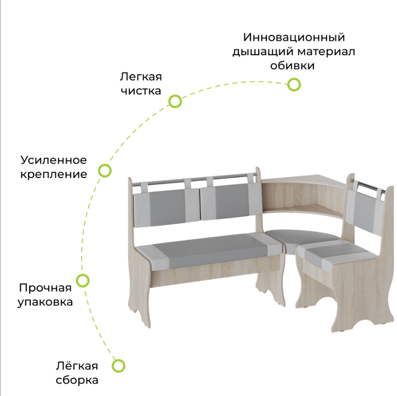 Кухонный уголок Дельта BONMEBEL Дуб молочный/экокожа Фисташка/Бежевый, 152х104х90.5 см