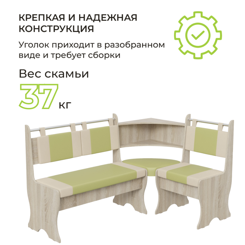 Кухонный уголок Дельта BONMEBEL Дуб молочный/экокожа Фисташка/Бежевый, 152х104х90.5 см