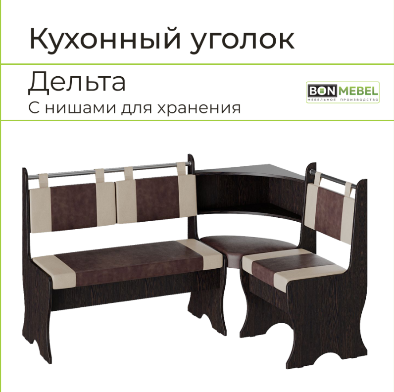 СохранитьКухонный уголок Дельта BONMEBEL Венге/коричневый беж. 152х104х90.5 см интересное:
