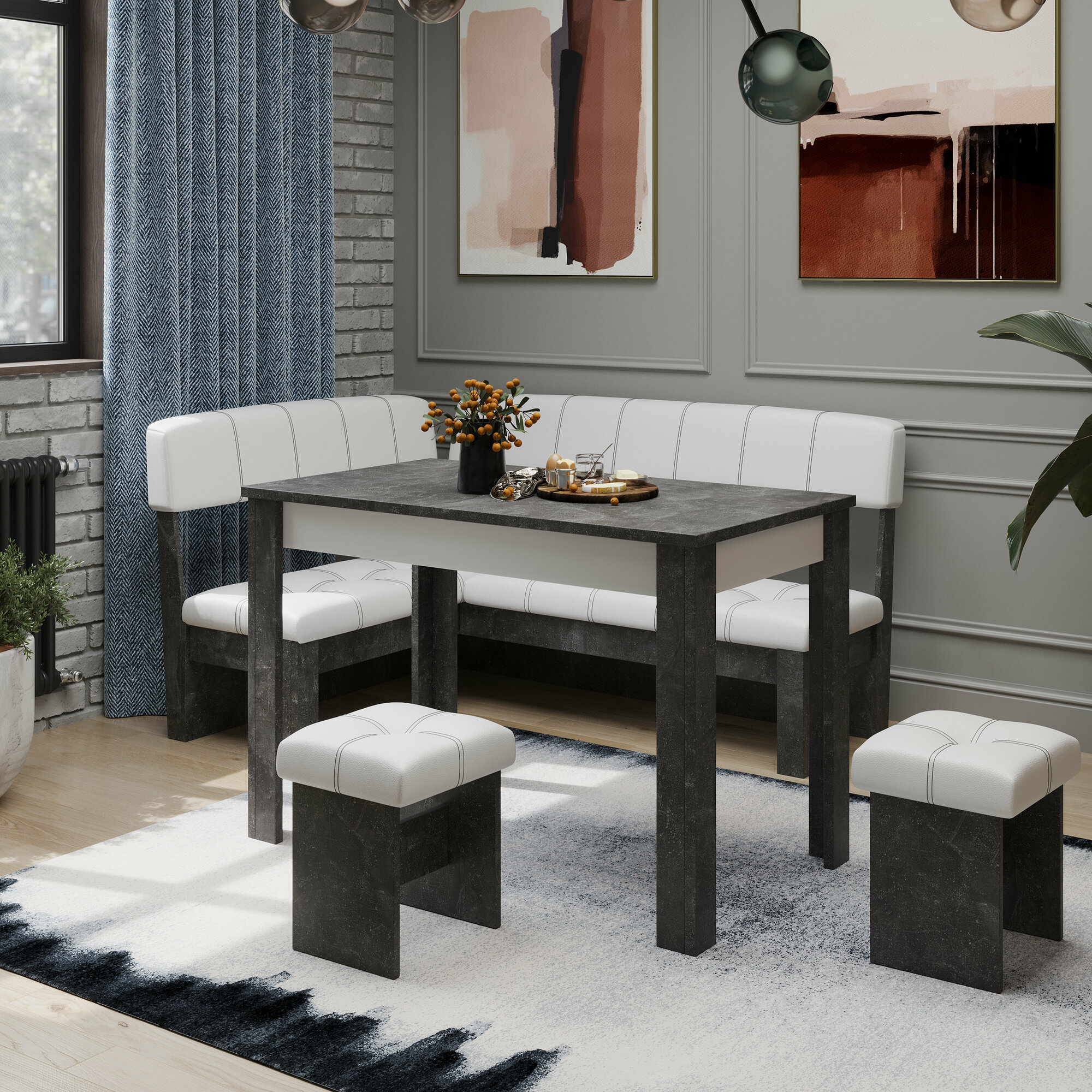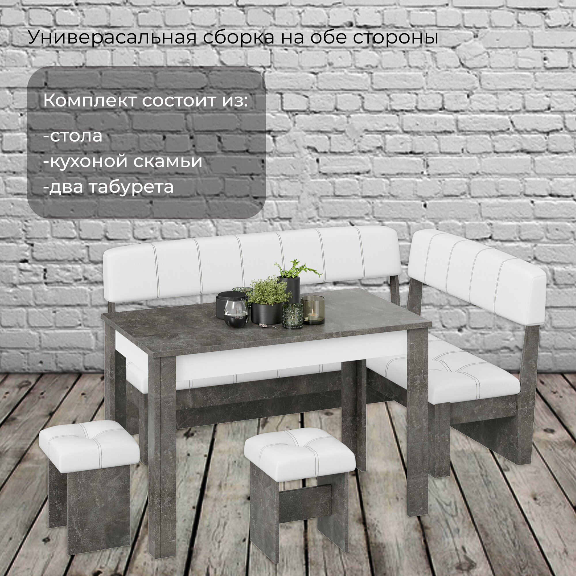 Купить Кухонный уголок со столом и табуретками, кухонный диван , кухонный набор стол и скамья серый белый, Альфа