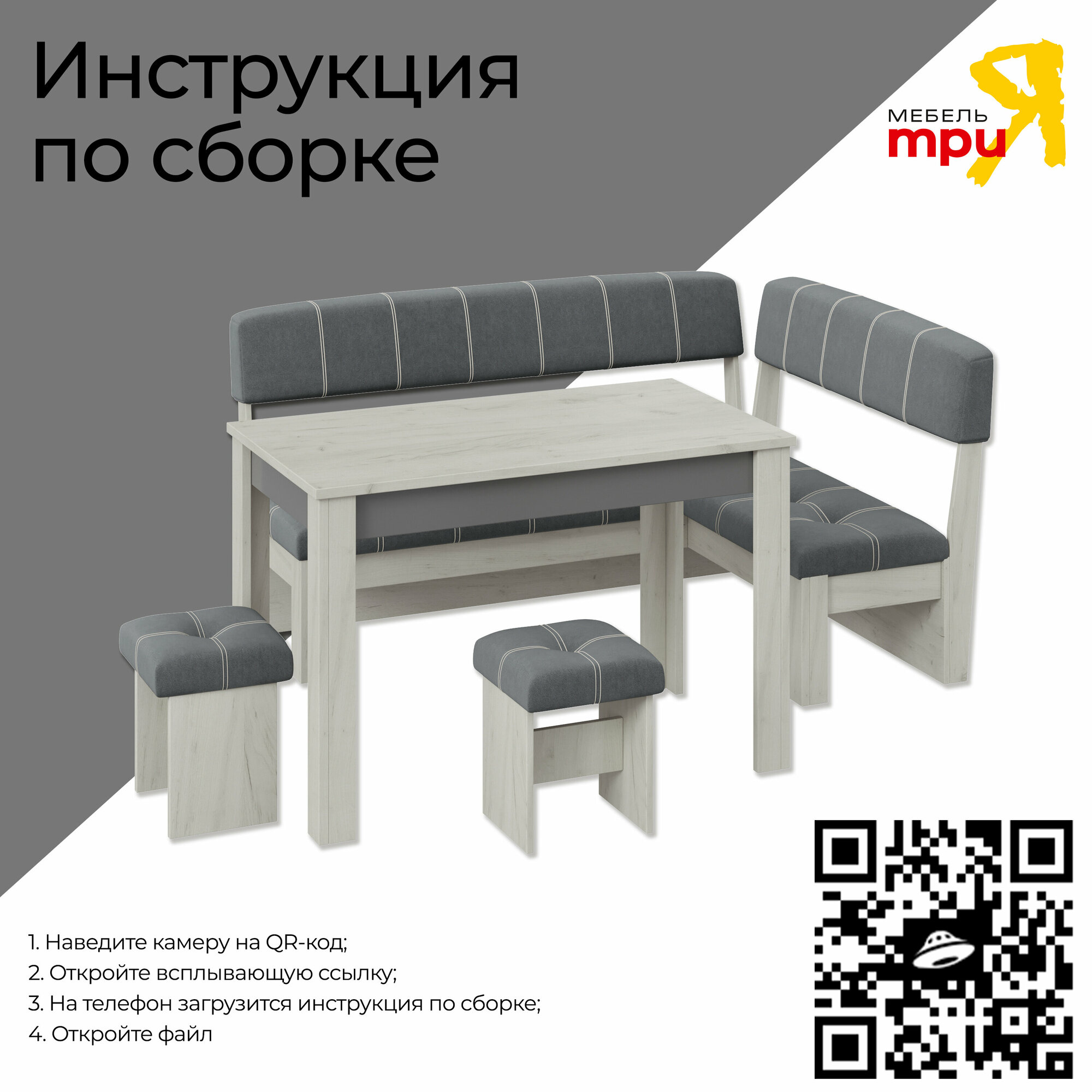 | Комплектация | Угловой диван - 1 шт, стол - 1 шт, табуреты - 2 шт |