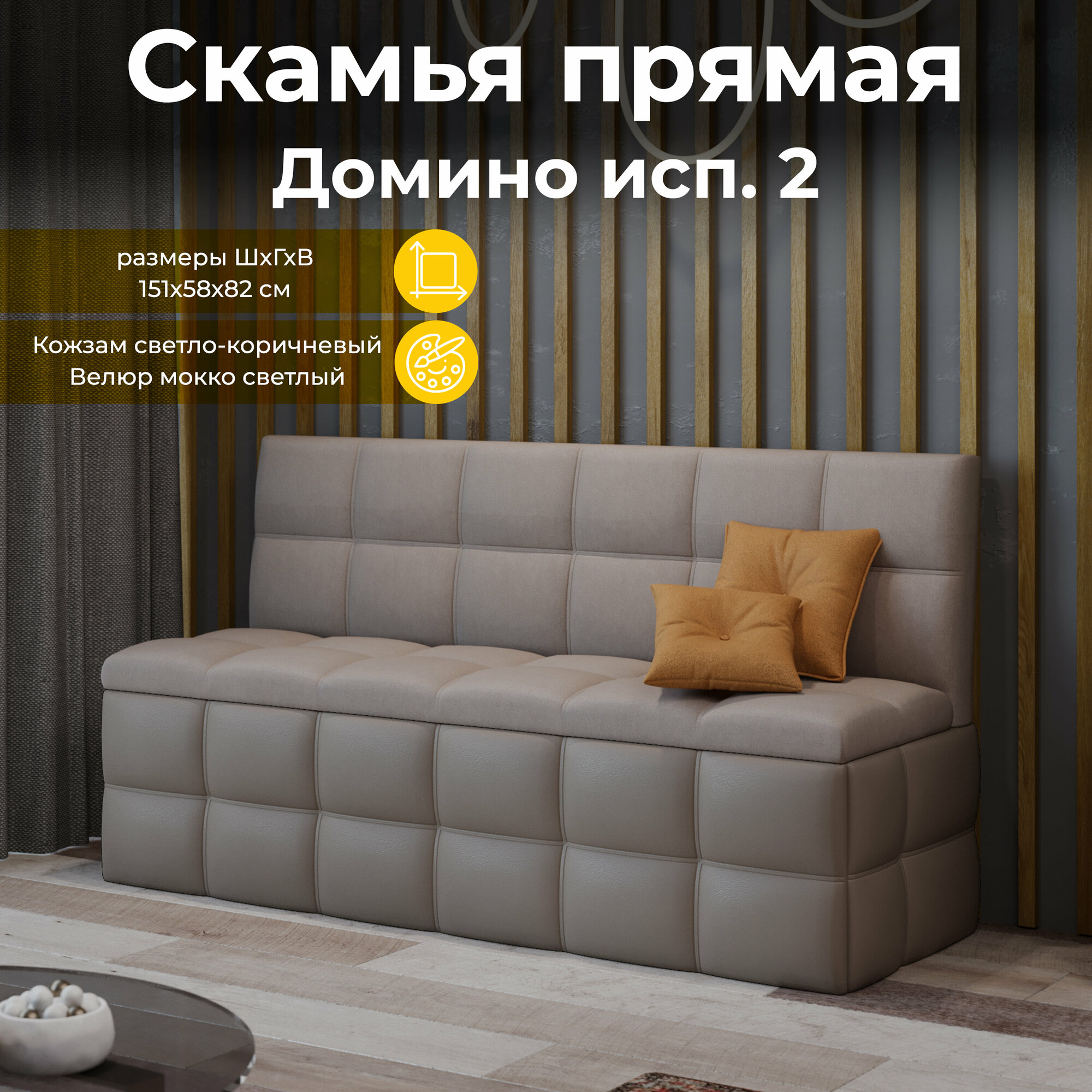 Кухонный диван, кухонная скамья прямая, светлокоричневый какао (ВхДхГ) 82х157х58 см, Домино интересное: