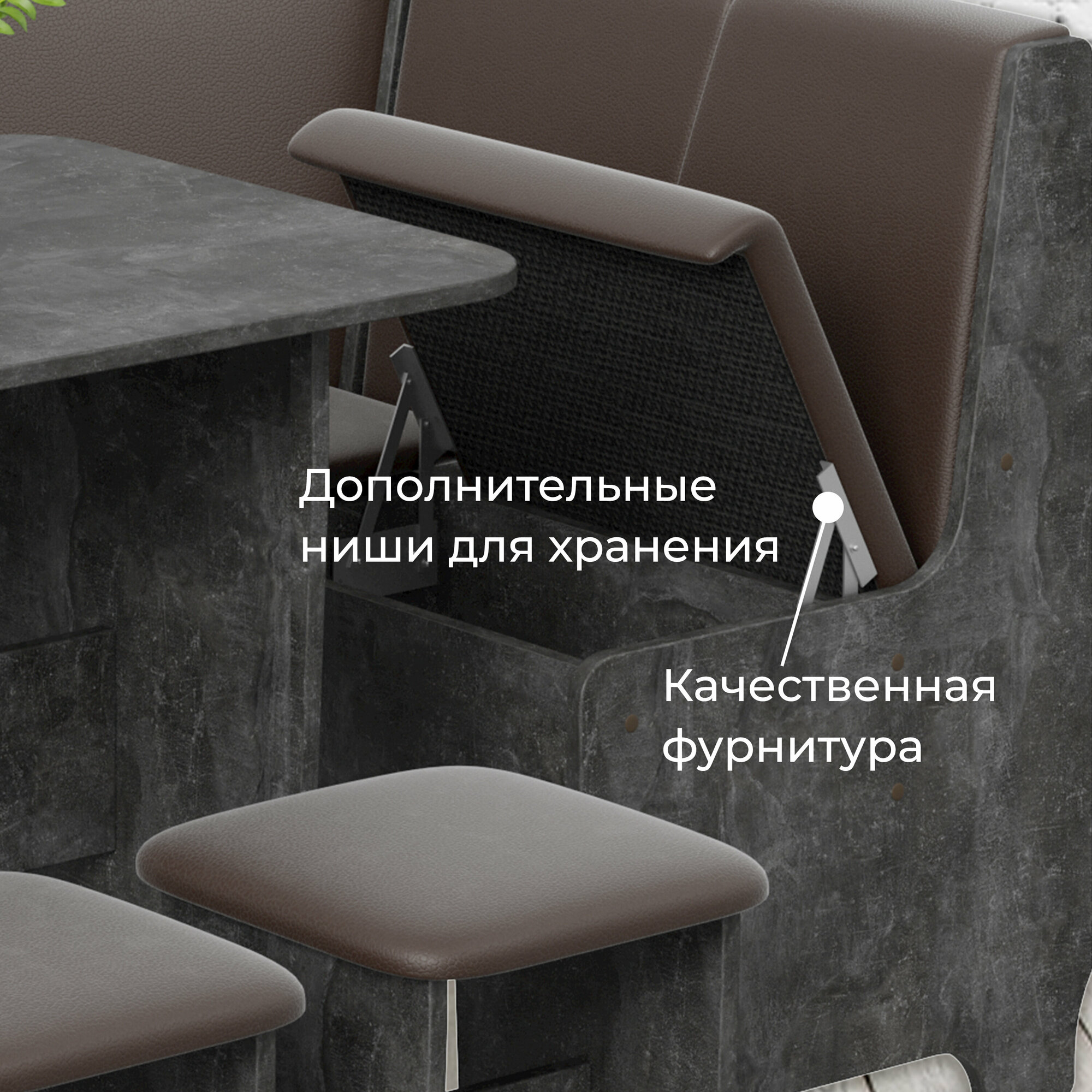 Купить Кухонный уголок со столом и табуретками, кухонный диван с ящиками серый коричневый, Техас