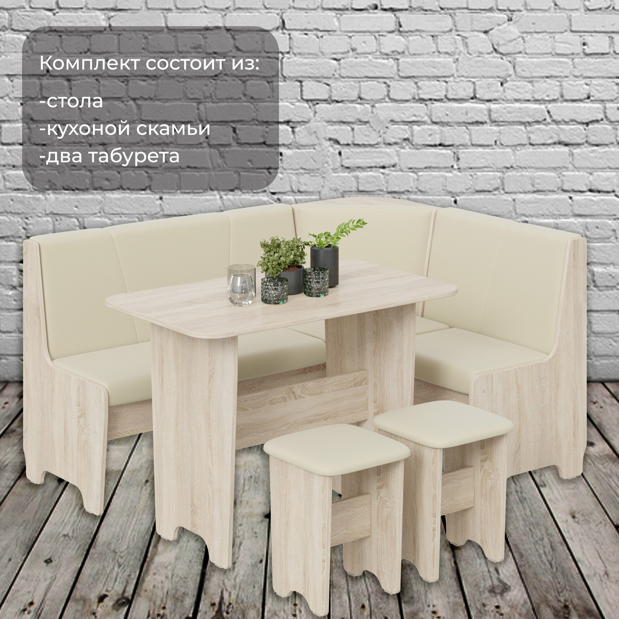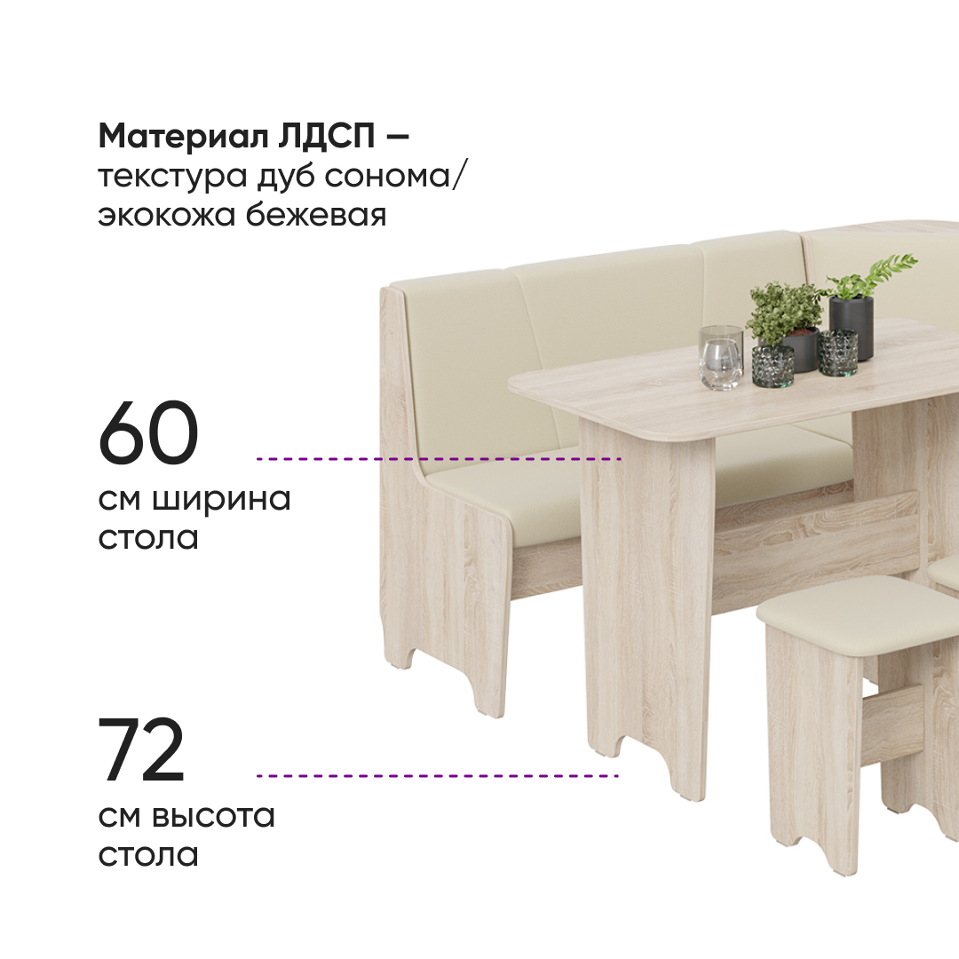 Купить Кухонный уголок со столом и табуретками, кухонный диван с ящиками бежевый, Техас