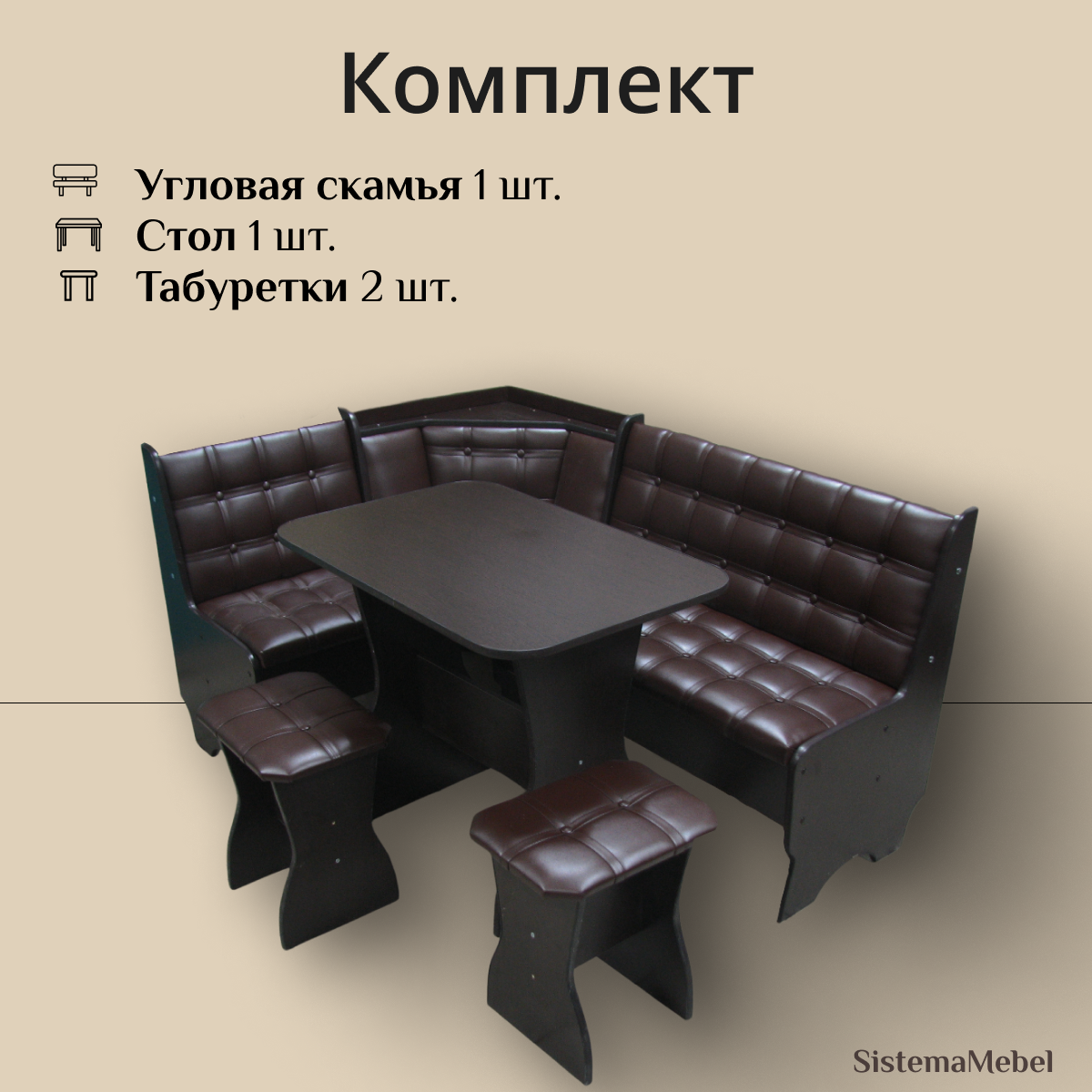 | Комплектация | Угловая скамья + стол +2 табурета |