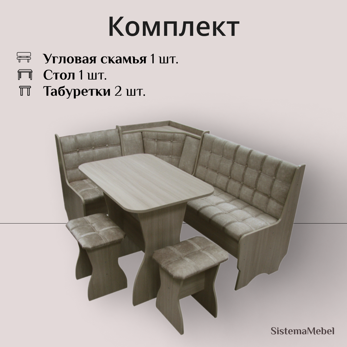 | Комплектация | Угловая скамья + стол +2 табурета |