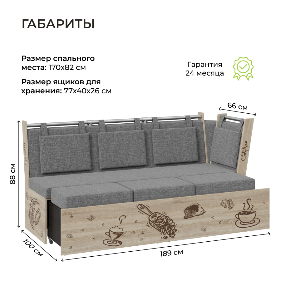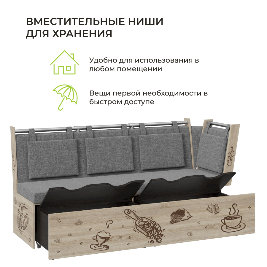 Кухонный диван "Роденго" PRIME (со спальным местом) L=189 см, ящик для хранения, цвет Ателье светлый/Ловерс Серый